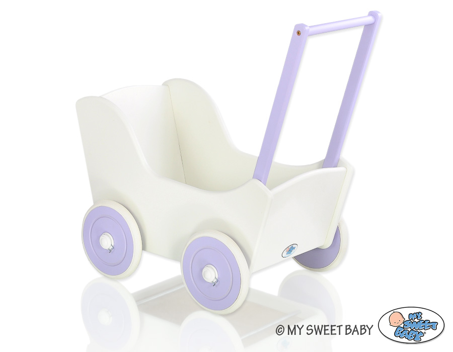 Kleinbaby.nl » Speelgoed Knuffels » Poppenwagens en Speelgoed » Houten Poppenwagen » Poppenwagen van Hout Purper » Poppenwagen van Hout met Dekentje Wit Purper