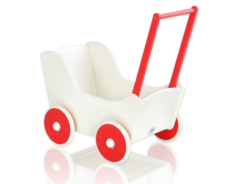 Kleinbaby.nl » Speelgoed Knuffels » Poppenwagens en Speelgoed » Houten Poppenwagen » Houten Poppenwagen Rood » Poppenwagen van Hout met Dekentje Wit Rood