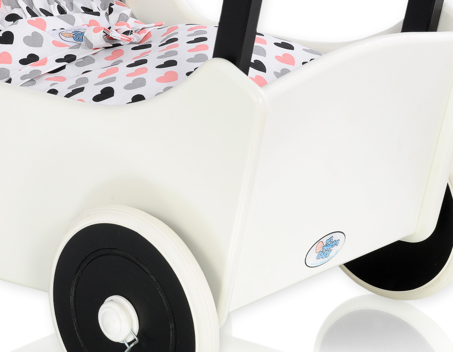 Kleinbaby.nl » Speelgoed Knuffels » Poppenwagens en Speelgoed » Houten Poppenwagen » Houten Poppenwagen Zwart en Wit » Poppenwagen van Hout met Dekentje Wit Zwart