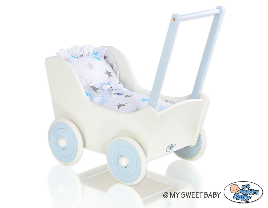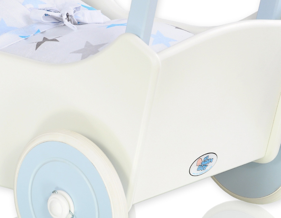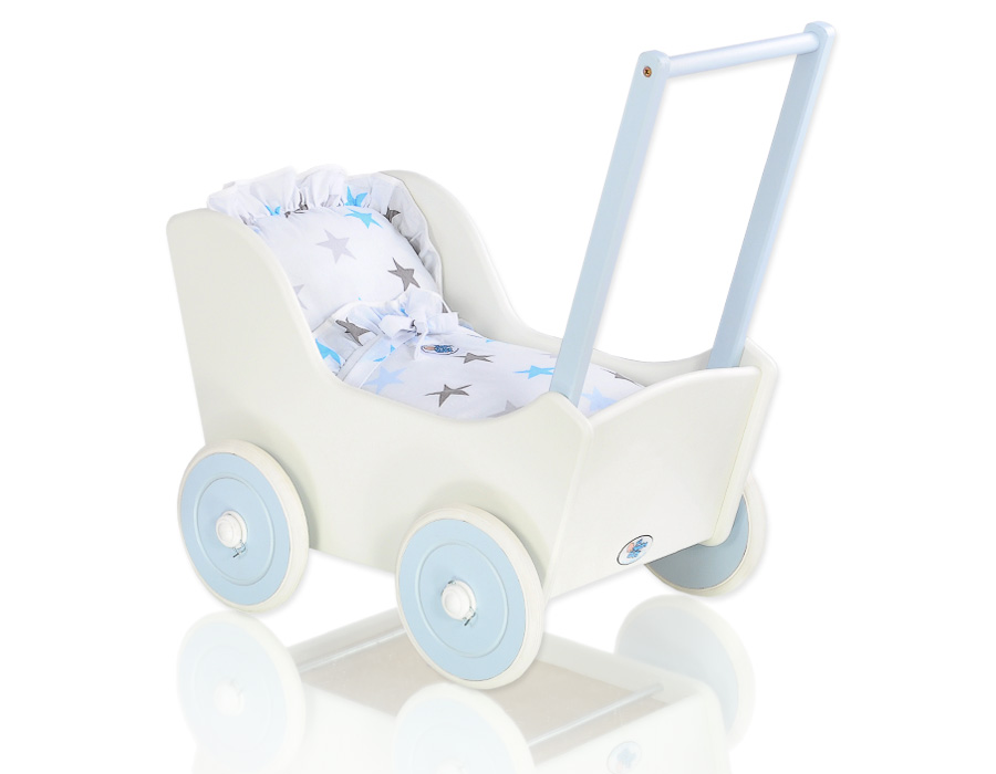Kleinbaby.nl » Speelgoed Knuffels » Poppenwagens en Speelgoed » Houten Poppenwagen » Houten Poppenwagen Blauw » Poppenwagen van Hout Wit Blauw