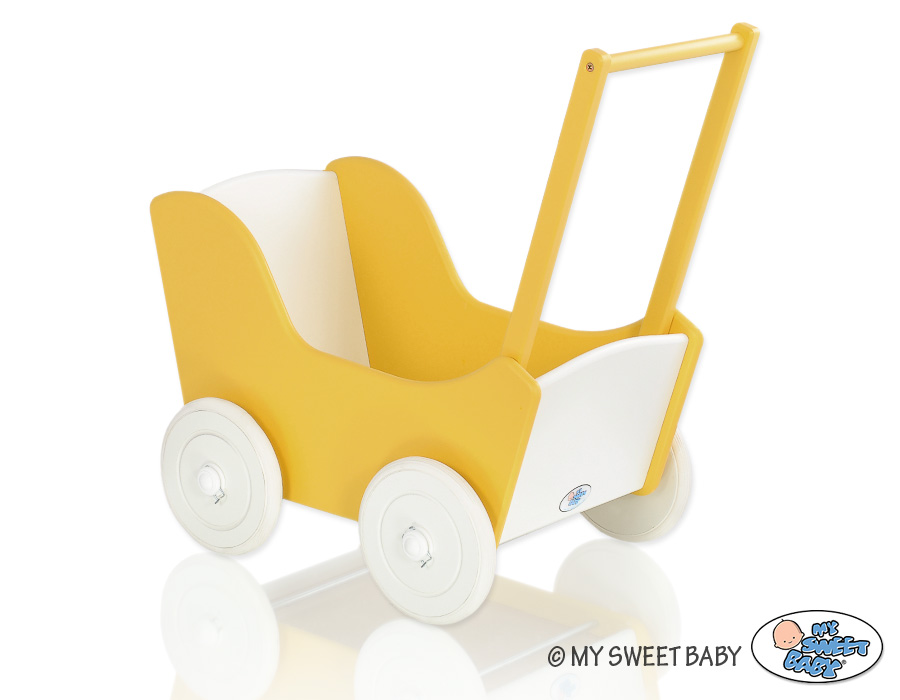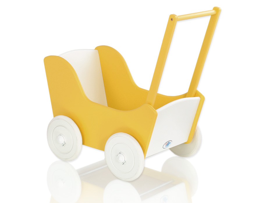 Kleinbaby.nl » Speelgoed Knuffels » Poppenwagens en Speelgoed » Houten Poppenwagen » Poppenwagen van Hout Geel » Poppenwagen van Hout Wit Geel