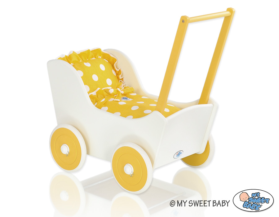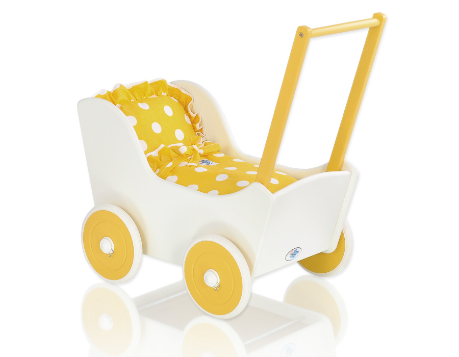 Kleinbaby.nl » Speelgoed Knuffels » Poppenwagens en Speelgoed » Houten Poppenwagen » Poppenwagen van Hout Geel » Poppenwagen van Hout Wit Geel