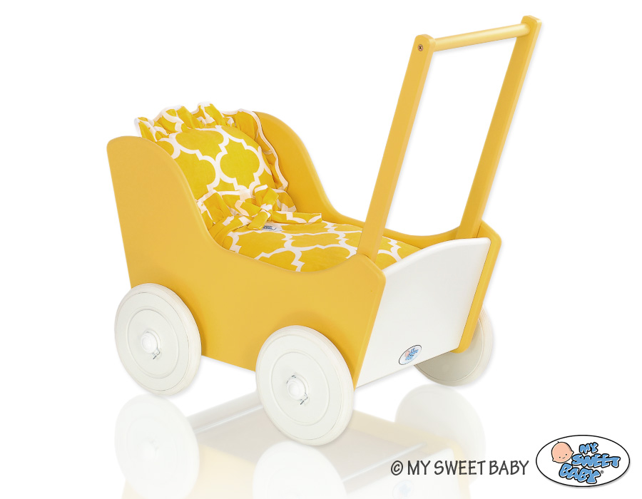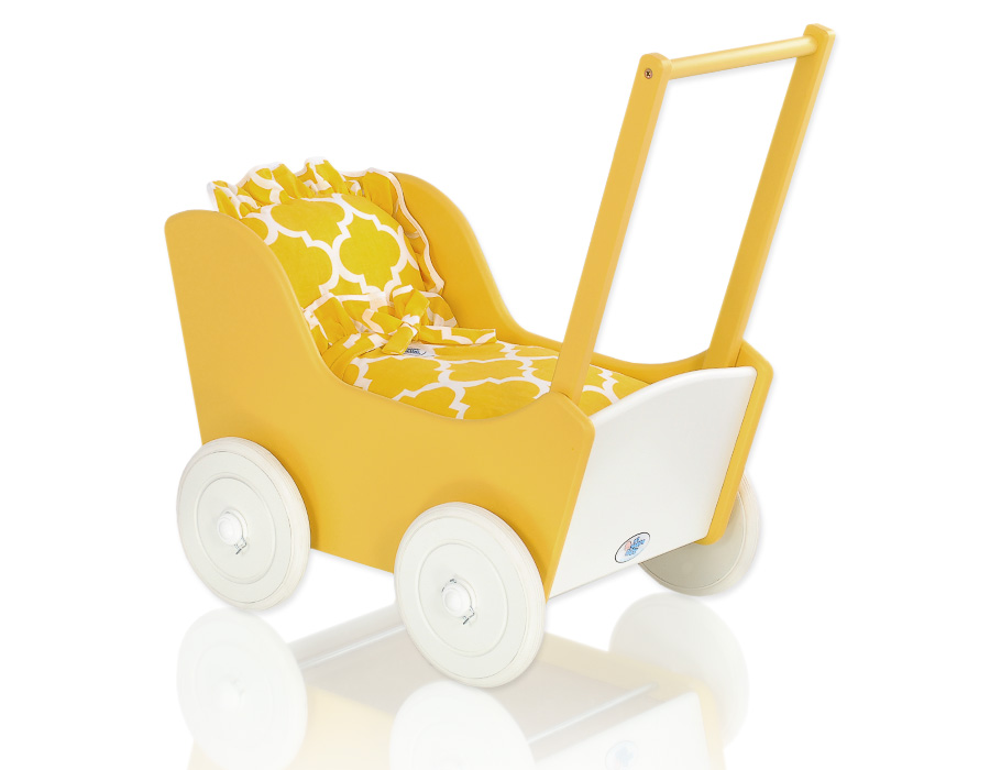 Kleinbaby.nl » Speelgoed Knuffels » Poppenwagens en Speelgoed » Houten Poppenwagen » Poppenwagen van Hout Geel » Poppenwagen van Hout Wit Geel