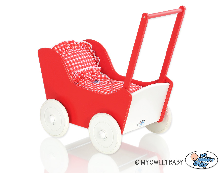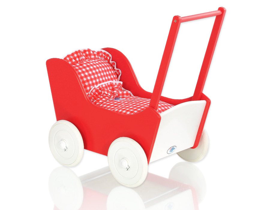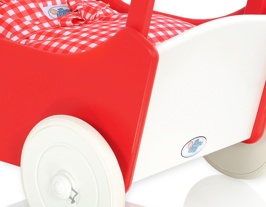 Kleinbaby.nl » Speelgoed Knuffels » Poppenwagens en Speelgoed » Houten Poppenwagen » Houten Poppenwagen Rood » Poppenwagen van Hout Wit Rood
