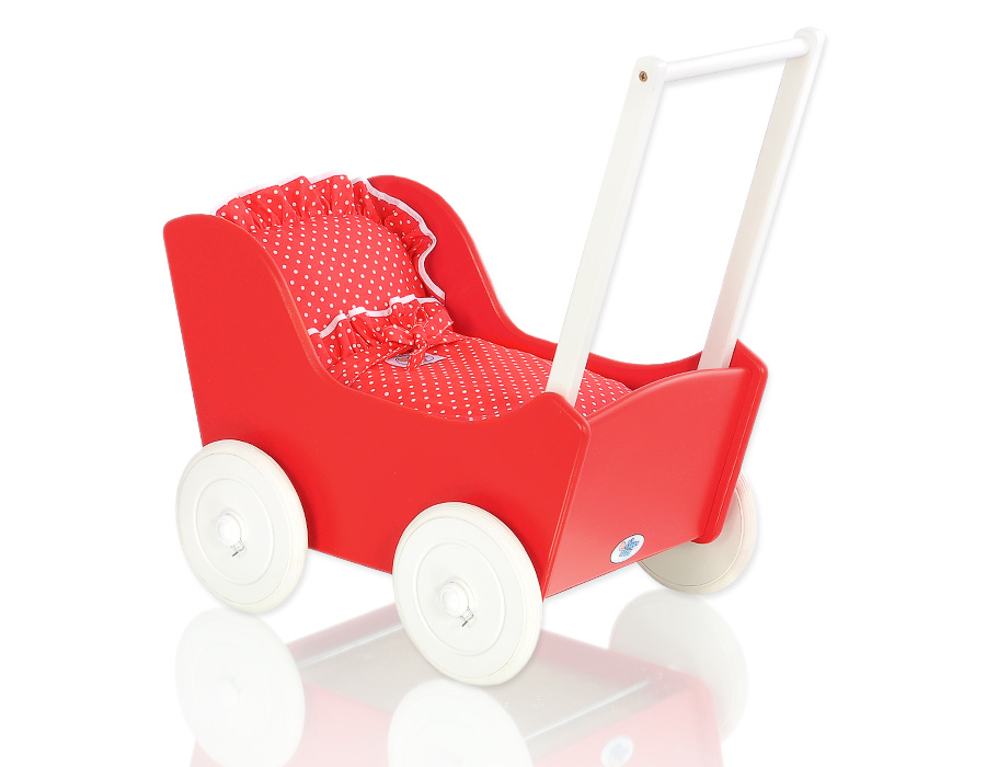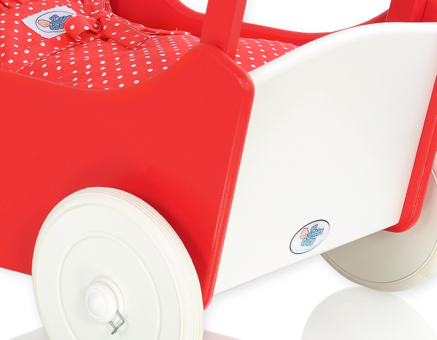 Kleinbaby.nl » Speelgoed Knuffels » Poppenwagens en Speelgoed » Houten Poppenwagen » Houten Poppenwagen Rood » Poppenwagen van Hout Wit Rood
