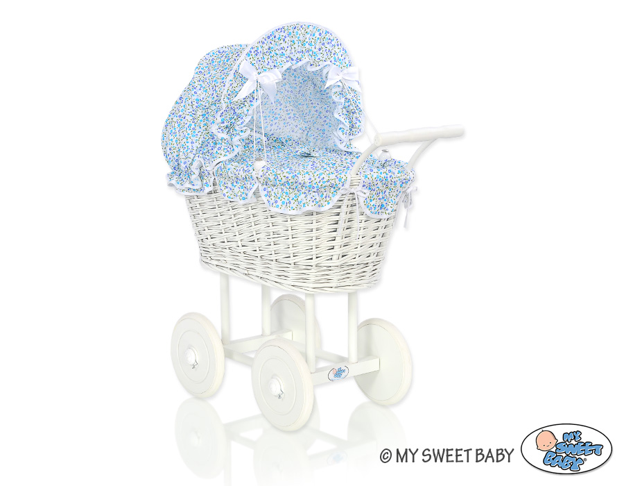 Kleinbaby.nl » Speelgoed Knuffels » Poppenwagens en Speelgoed » Poppenwagen van Riet » Rieten Poppenwagens » Poppenwagen van Riet Blauw Bloemenweide Bloemen