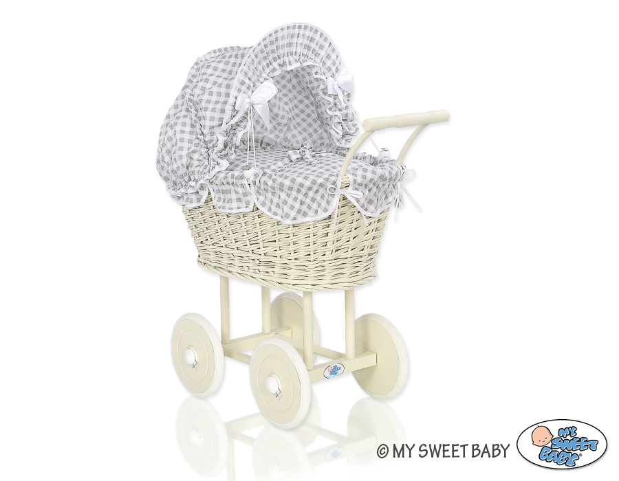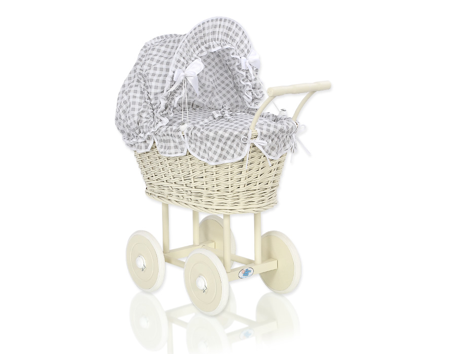 Kleinbaby.nl » Speelgoed Knuffels » Poppenwagens en Speelgoed » Poppenwagen van Riet » Poppenwagen Rotan Ivoor » Poppenwagen van riet Grijs Geruit