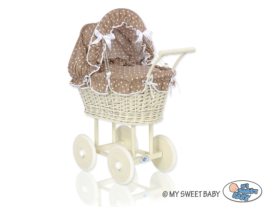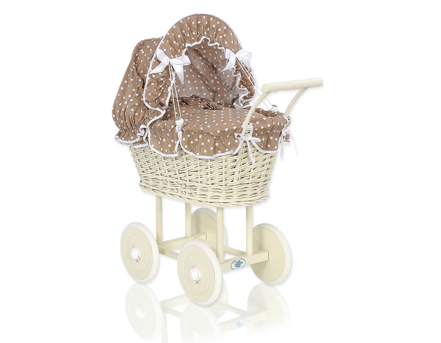 Kleinbaby.nl » Speelgoed Knuffels » Poppenwagens en Speelgoed » Poppenwagen van Riet » Poppenwagen Rotan Ivoor » Poppenwagen van riet Ivoor Bruin Polkaprikker