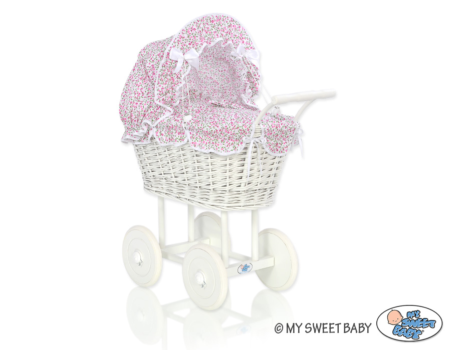 Kleinbaby.nl » Speelgoed Knuffels » Poppenwagens en Speelgoed » Poppenwagen van Riet » Rieten Poppenwagens » Poppenwagen van Riet Roze Bloemenweide Bloemen