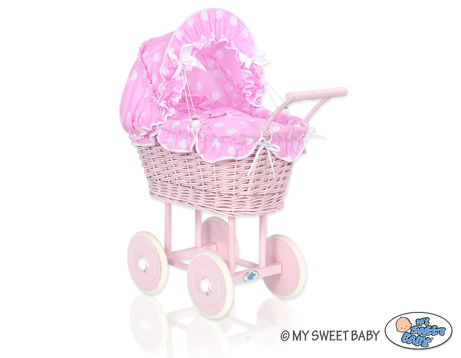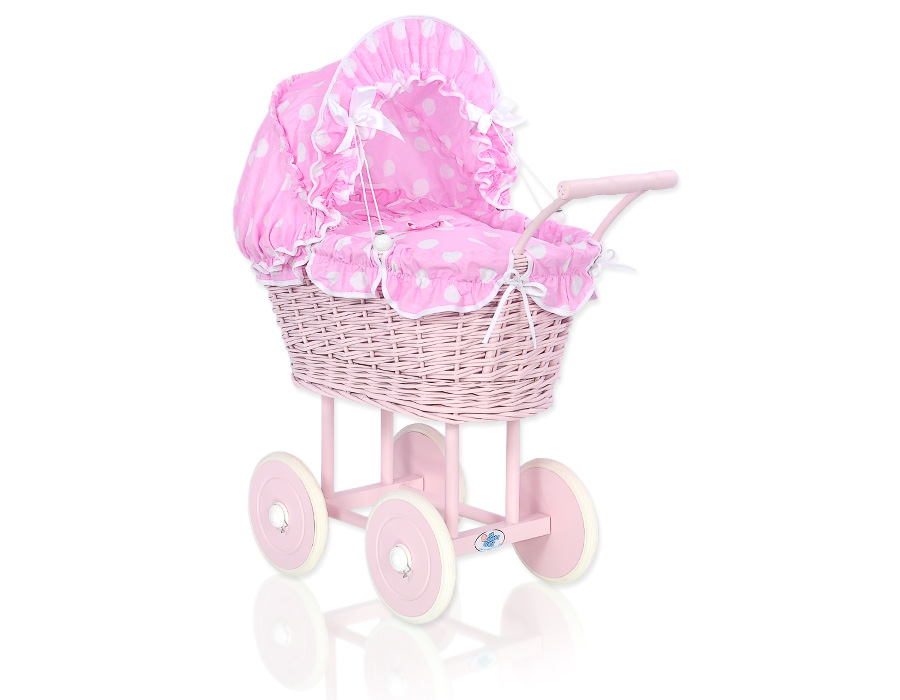 Poppenwagen van riet Roze Polkaprikker StofrozePoppenwagen van riet Roze Polkaprikker StofrozePoppenwagen van riet Roze Polkaprikker Stofroze