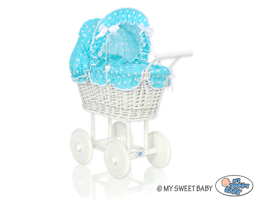 Kleinbaby.nl » Speelgoed Knuffels » Poppenwagens en Speelgoed » Poppenwagen van Riet » Rieten Poppenwagens » Poppenwagen van Riet Turkoois Polkaprikker
