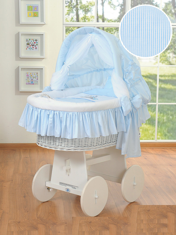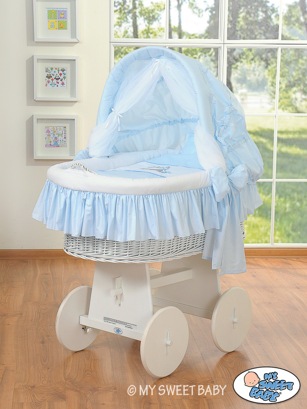 Kleinbaby.nl » Babywiege » Wiegje met kap » Wiegen met kap » Rieten Babybed met Kap Blauw Ezel Luca