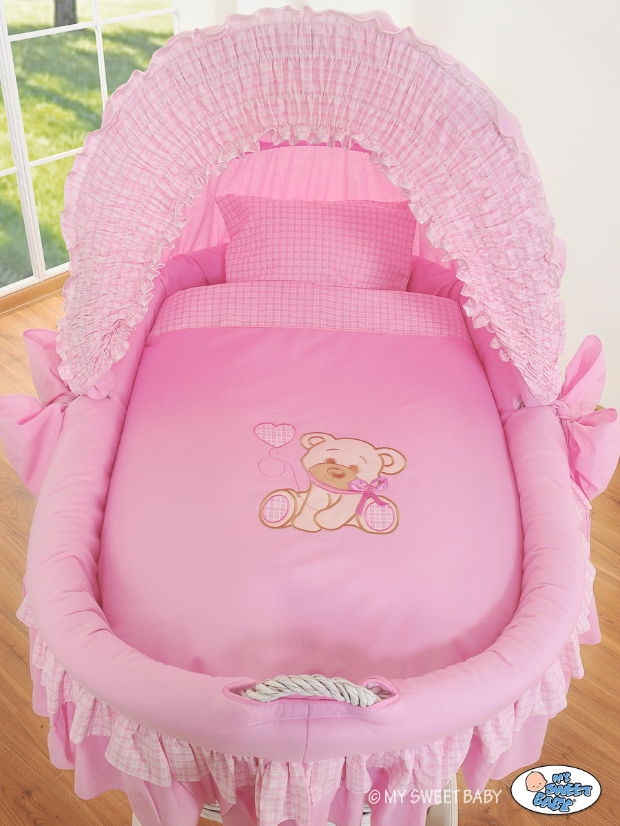 Rieten Babybed met Kap Roze Bear With BowRieten Babybed met Kap Roze Bear With BowRieten Babybed met Kap Roze Bear With Bow