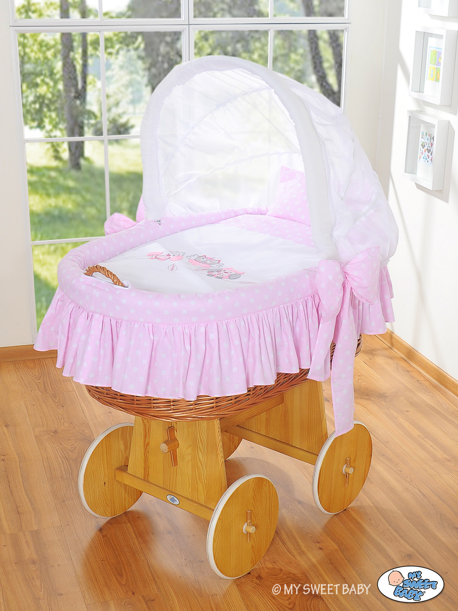 Rieten Babybed met Kap Roze Gelukkige UilenRieten Babybed met Kap Roze Gelukkige UilenRieten Babybed met Kap Roze Gelukkige Uilen