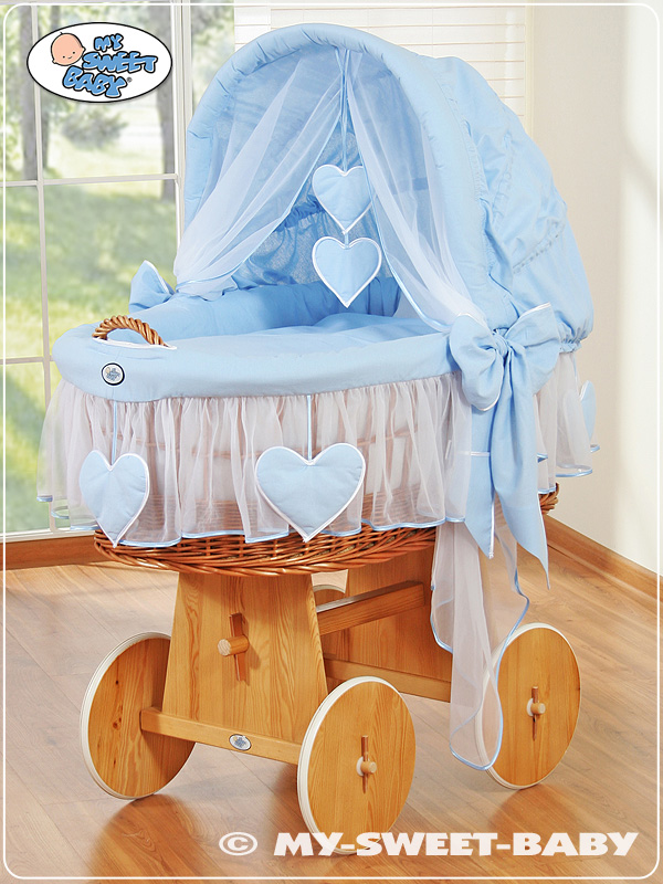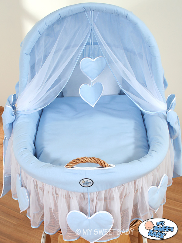 Rieten Babymand met Kap Blauw Amelie