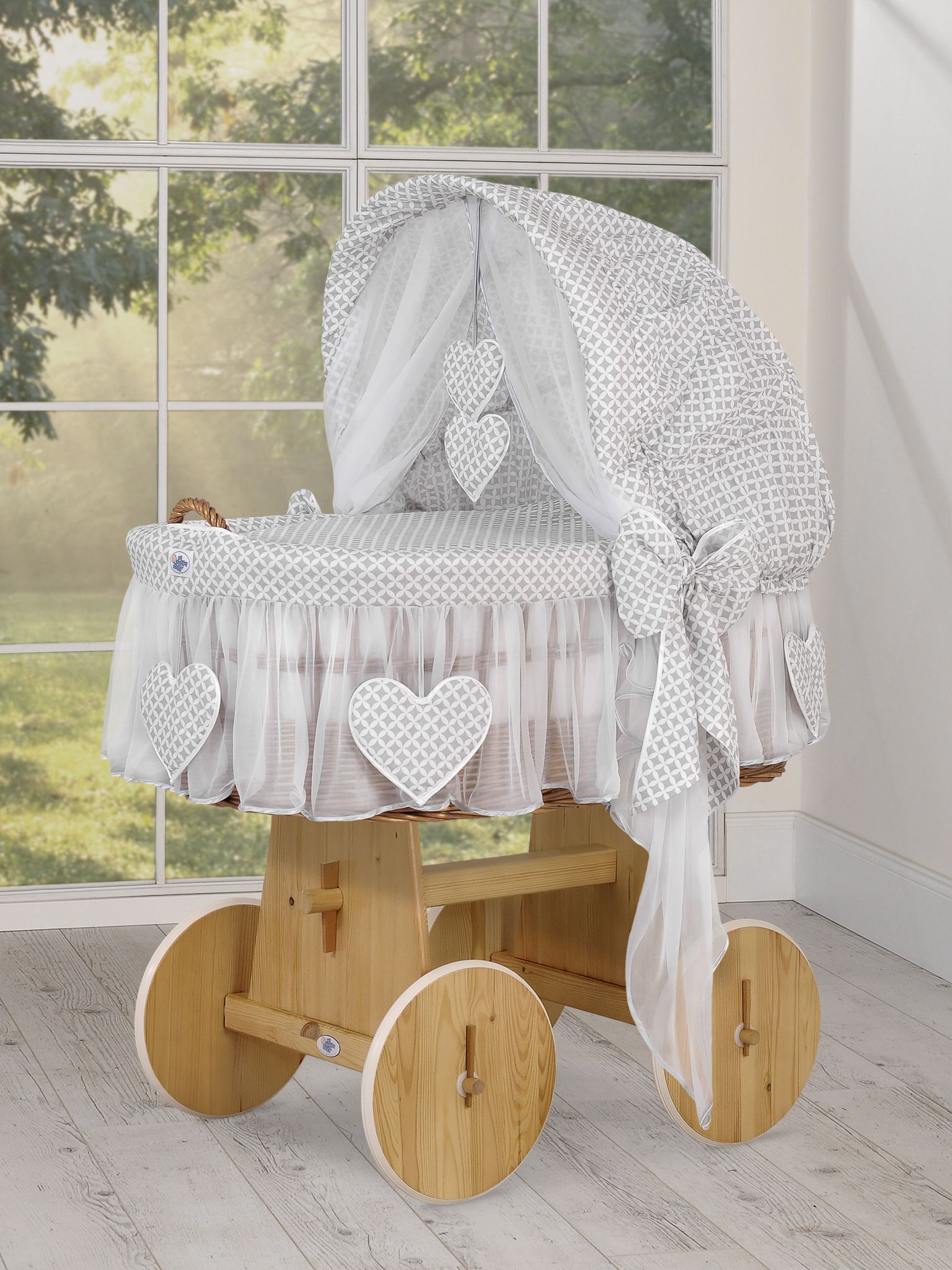 Rieten Babymand met Kap Grijs Amelie