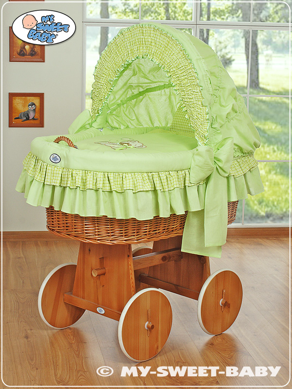 Kleinbaby.nl » Babywiege » Wiegje met kap » Wiegen met kap » Rieten Babymand met Kap Groen Bear With Bow