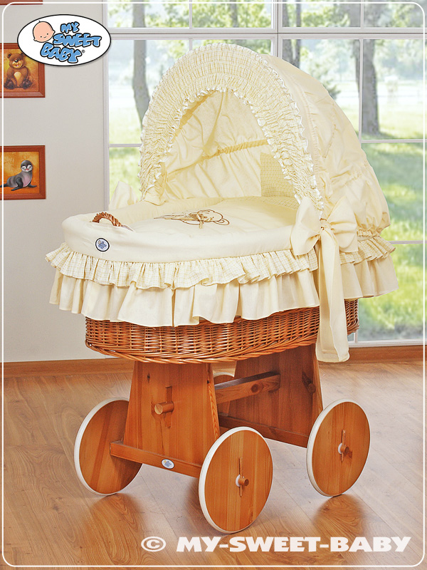 Kleinbaby.nl » Babywiege » Wiegje met kap » Wiegen met kap » Rieten Babymand met Kap Ivoor Bear With Bow