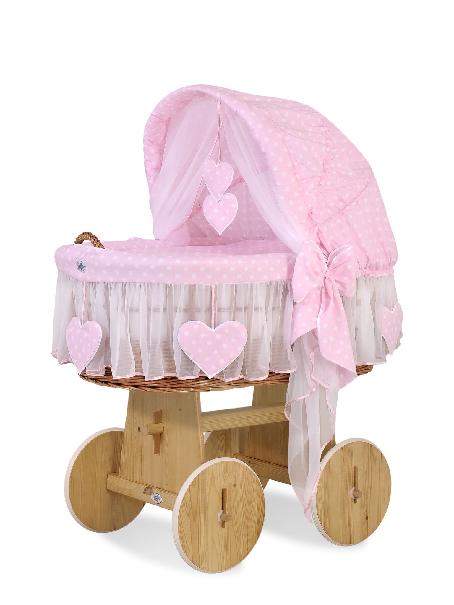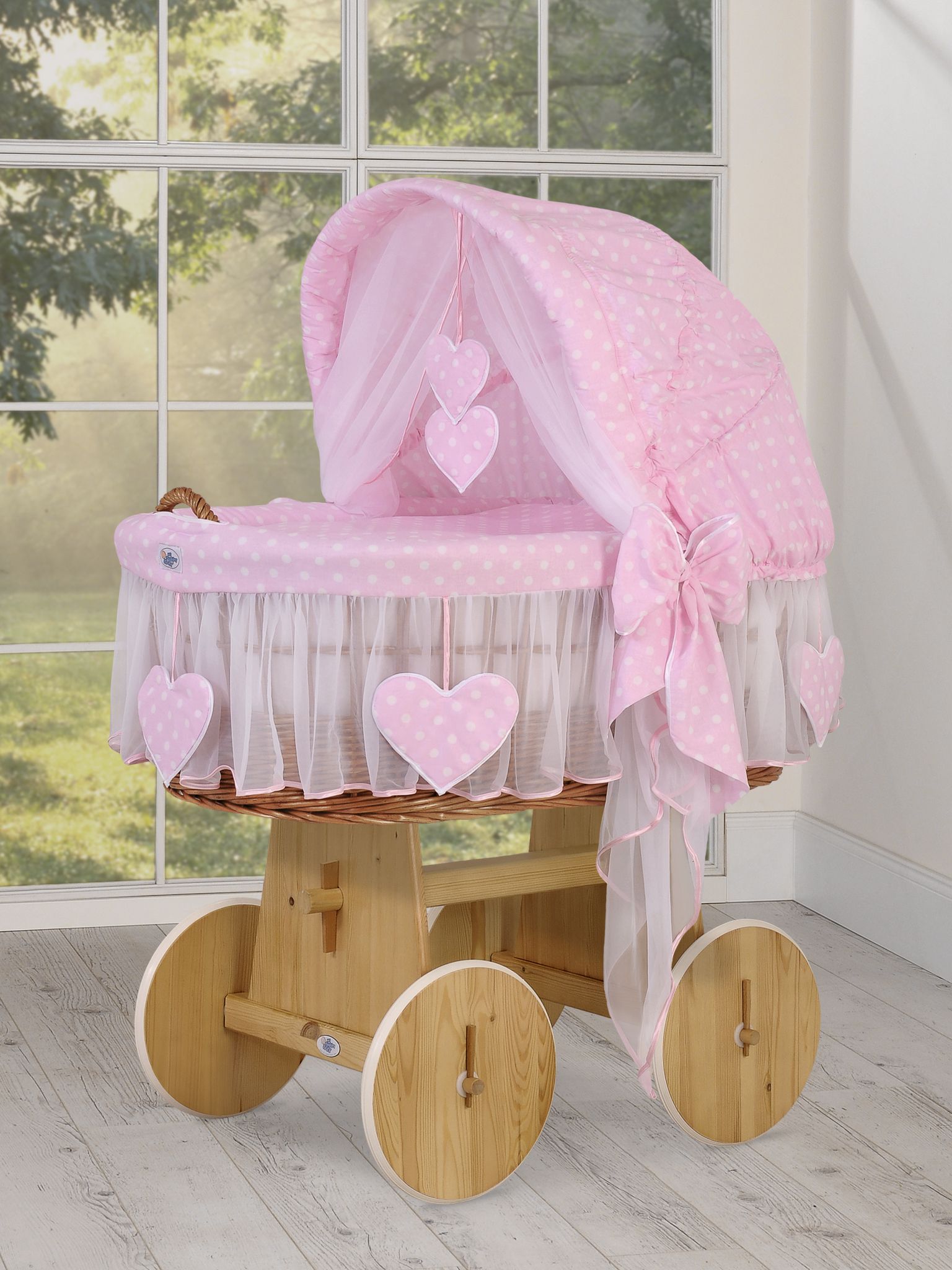 Rieten Babymand met Kap Roze Polkaprikker AmelieRieten Babymand met Kap Roze Polkaprikker AmelieRieten Babymand met Kap Roze Polkaprikker Amelie