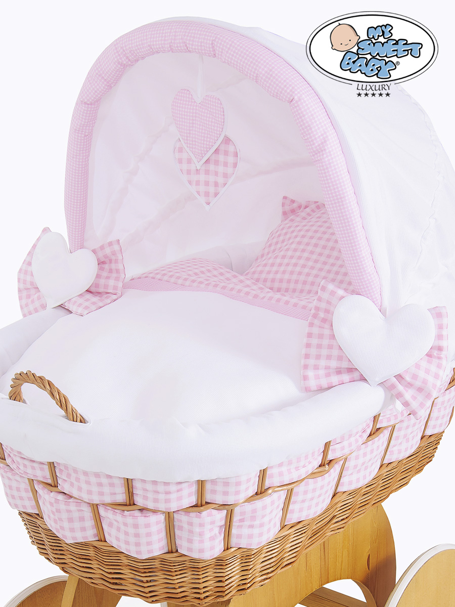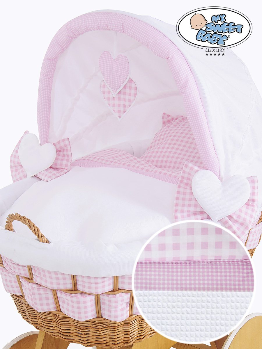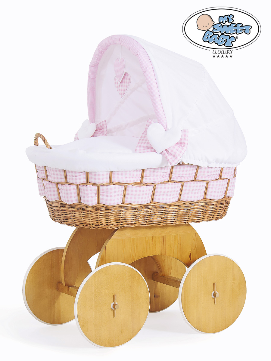 Kleinbaby.nl » Babywiege » Rieten Wieg My Sweet Baby Luxury » Rieten Wiegen met Kap » Rieten Wiegen met Kap » Rieten en Houten Wieg - met Kap - Beddengoedset Isabella