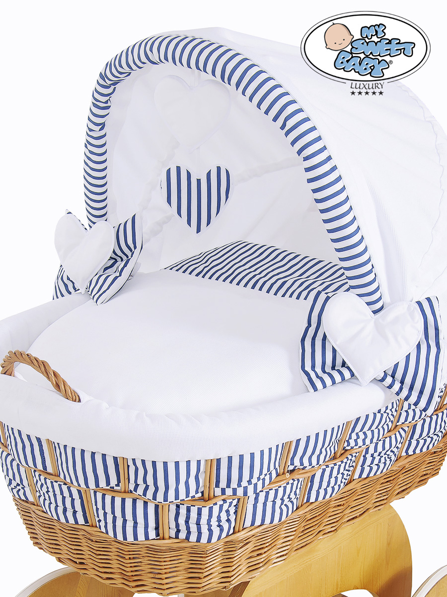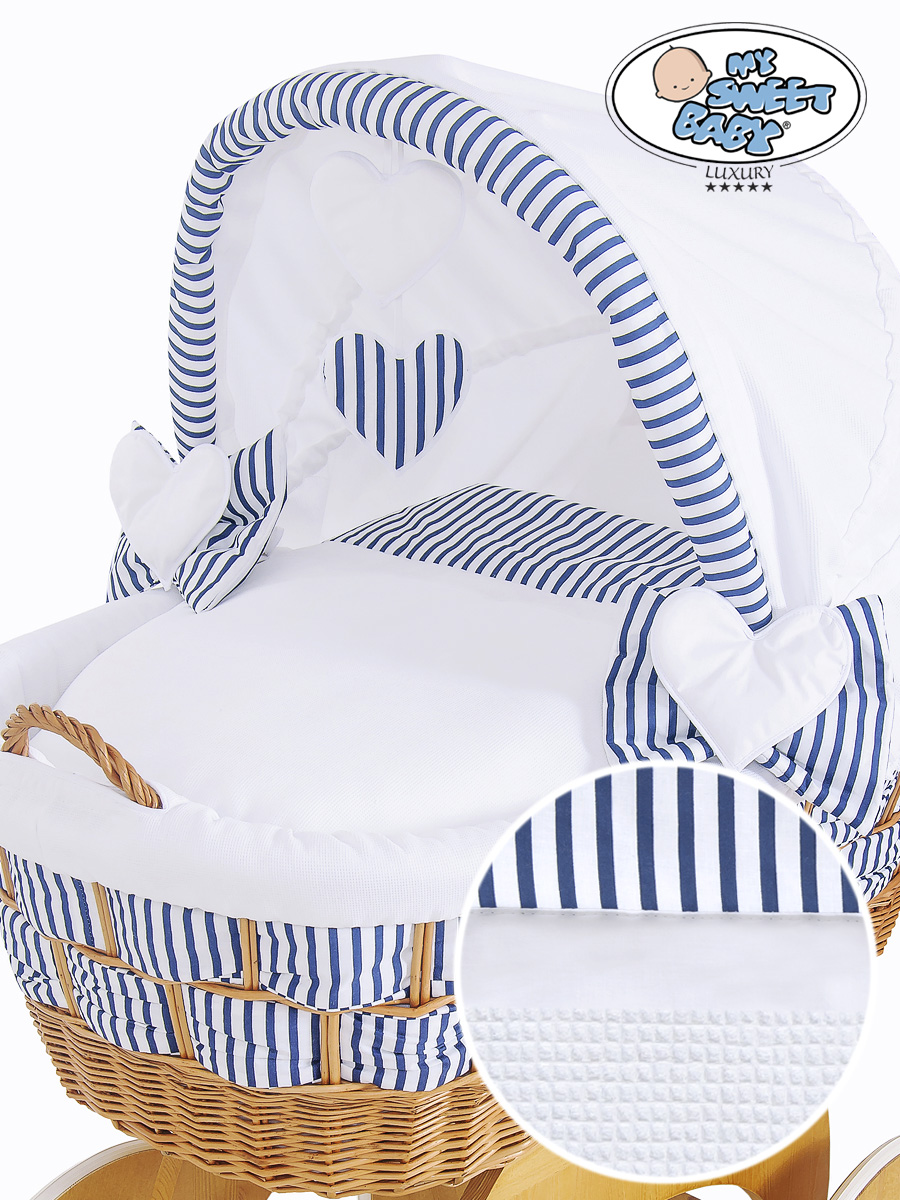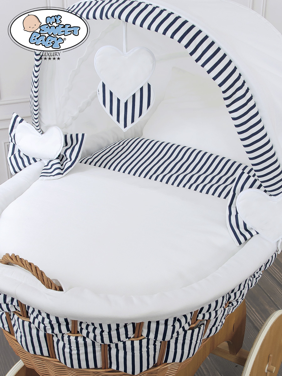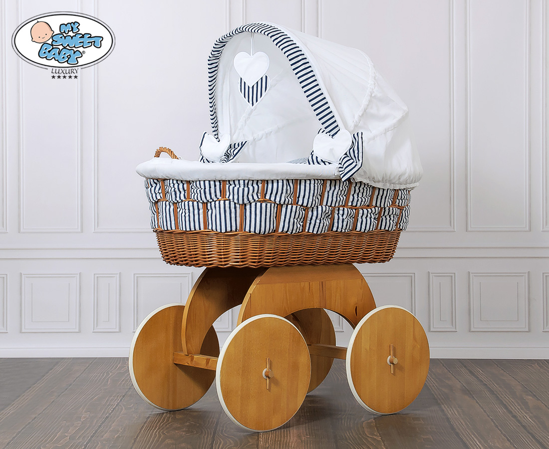 Kleinbaby.nl » Babywiege » Rieten Wieg My Sweet Baby Luxury » Rieten Wiegen met Kap » Rieten Wiegen met Kap » Rieten en Houten Wieg - met Kap - Beddengoedset Jachthaven