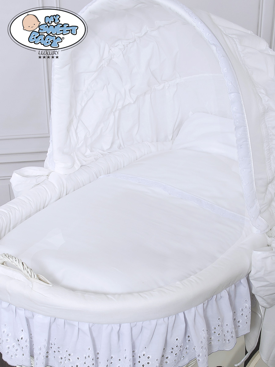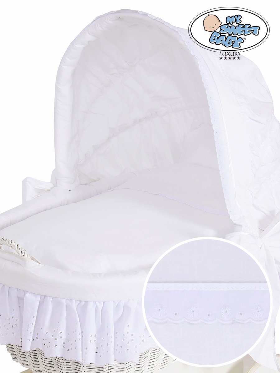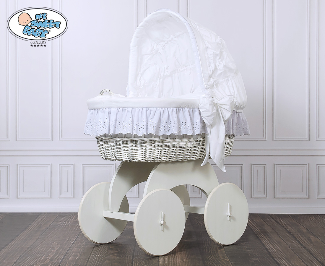 Kleinbaby.nl » Babywiege » Rieten Wieg My Sweet Baby Luxury » Rieten Wiegen met Kap » Rieten Wiegen met Kap » Rieten en Houten Wieg - met Kap - Komplett-Set Sophia