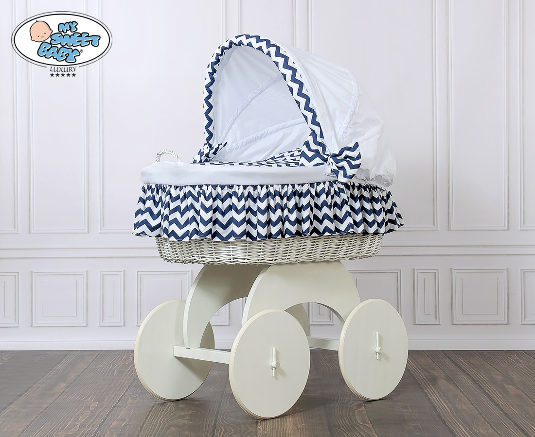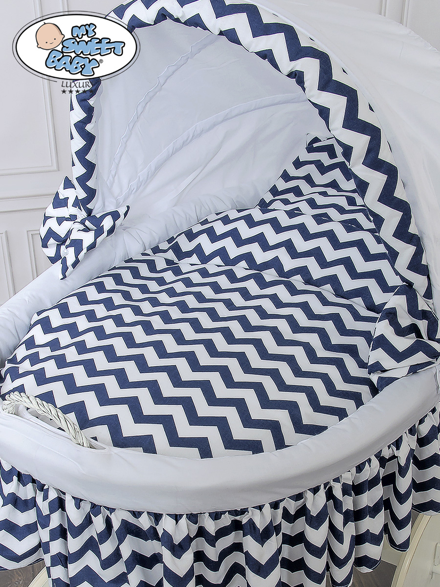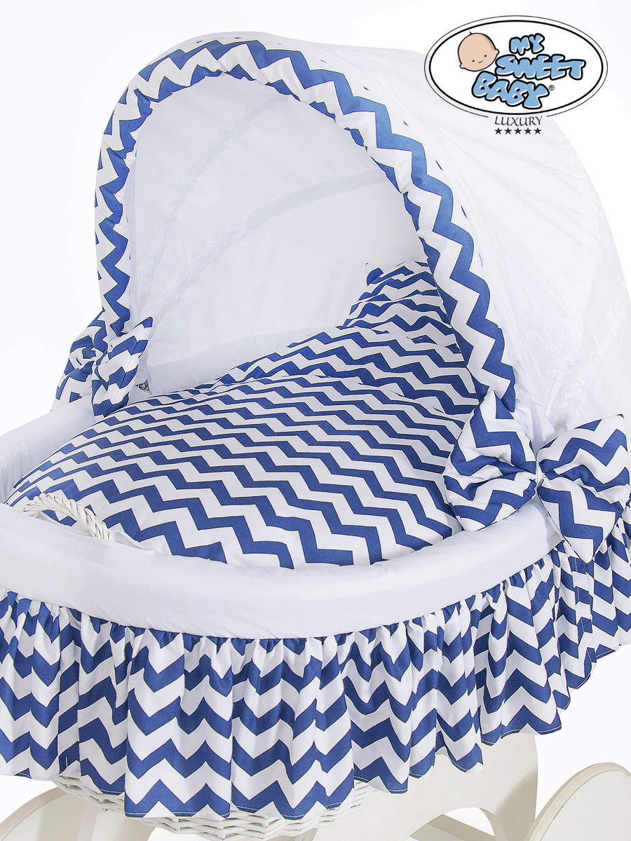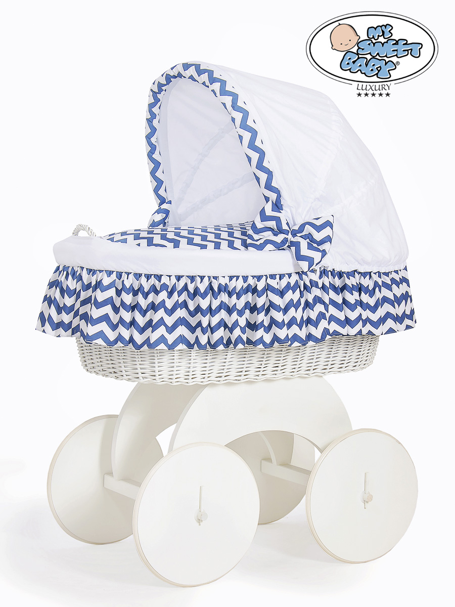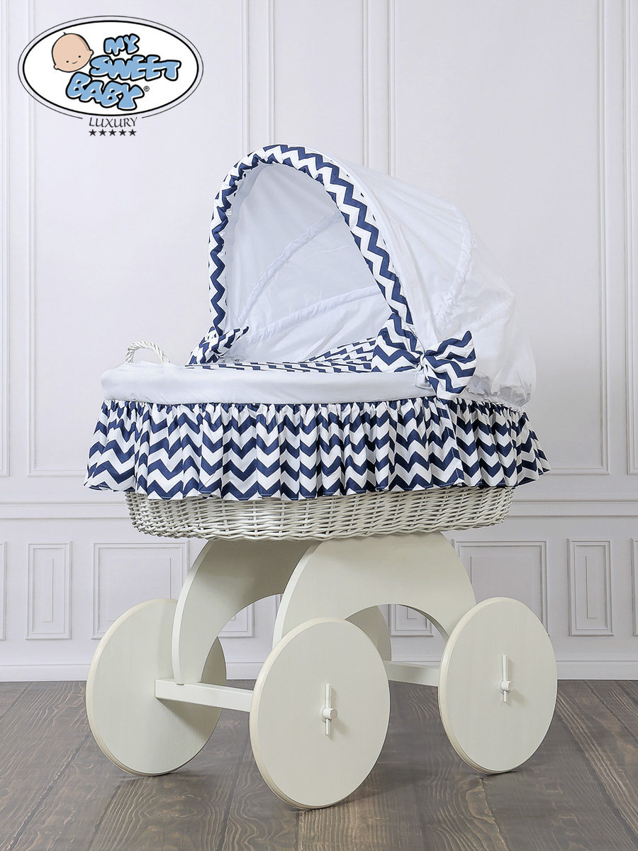 Kleinbaby.nl » Babywiege » Rieten Wieg My Sweet Baby Luxury » Rieten Wiegen met Kap » Rieten Wiegen met Kap » Rieten en Houten Wieg - met Kap - Komplett-Set Wit Marineblauw Hanna