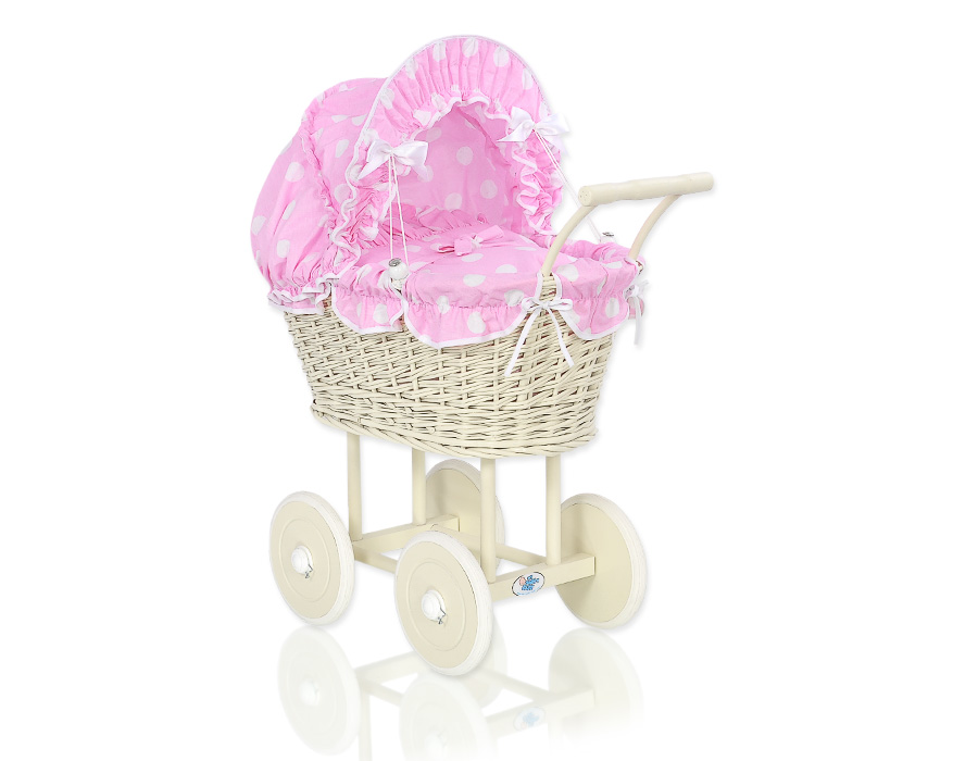 Rieten Poppenwagen met Beddengoed Ivoor Roze PolkaprikkerRieten Poppenwagen met Beddengoed Ivoor Roze PolkaprikkerRieten Poppenwagen met Beddengoed Ivoor Roze Polkaprikker