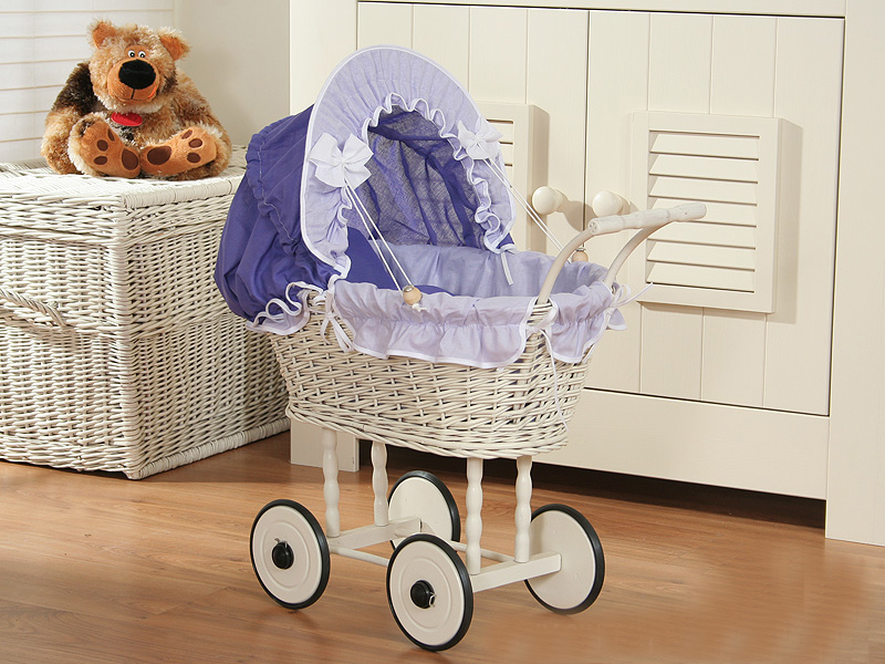 Kleinbaby.nl » Speelgoed Knuffels » Poppenwagens en Speelgoed » Poppenwagen van Riet » Rieten Poppenwagens » Rieten Poppenwagen met Beddengoed Wit