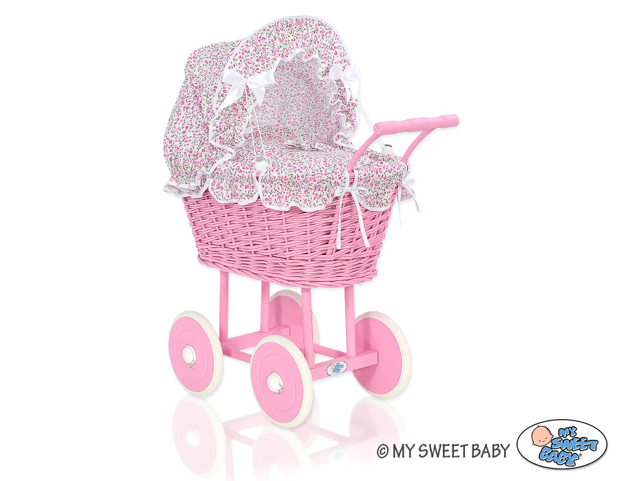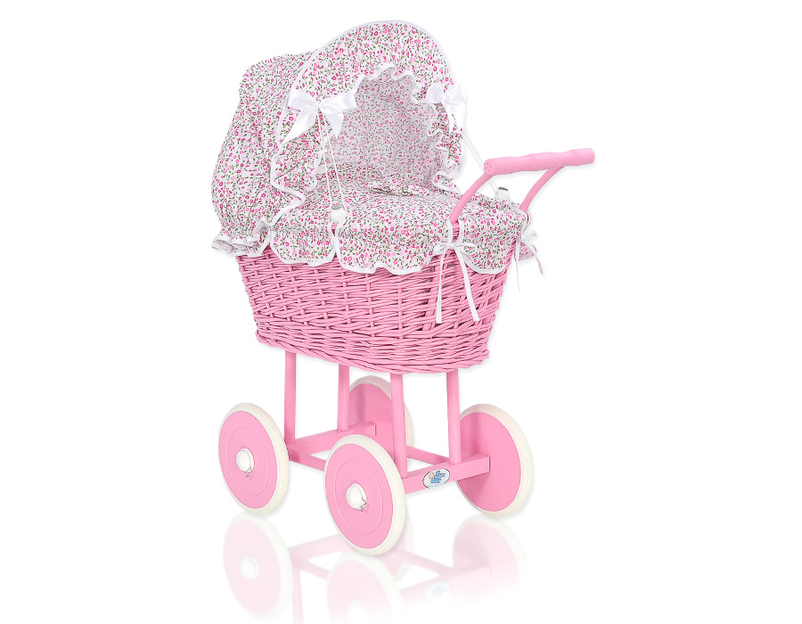 Rieten poppenwagen met kap Roze Bloemenweide BloemenRieten poppenwagen met kap Roze Bloemenweide BloemenRieten poppenwagen met kap Roze Bloemenweide Bloemen