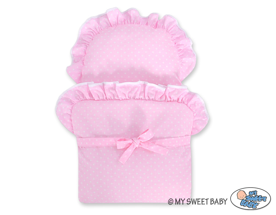 Rieten poppenwagen met kap Roze Wit Purper Polkaprikker