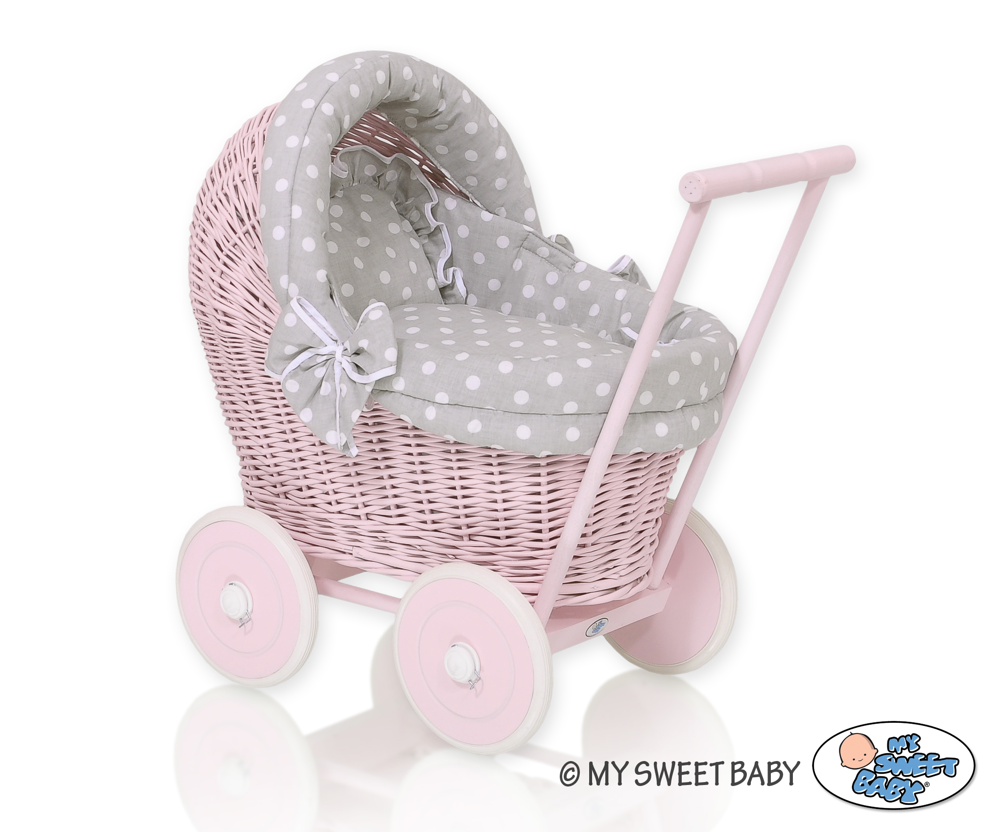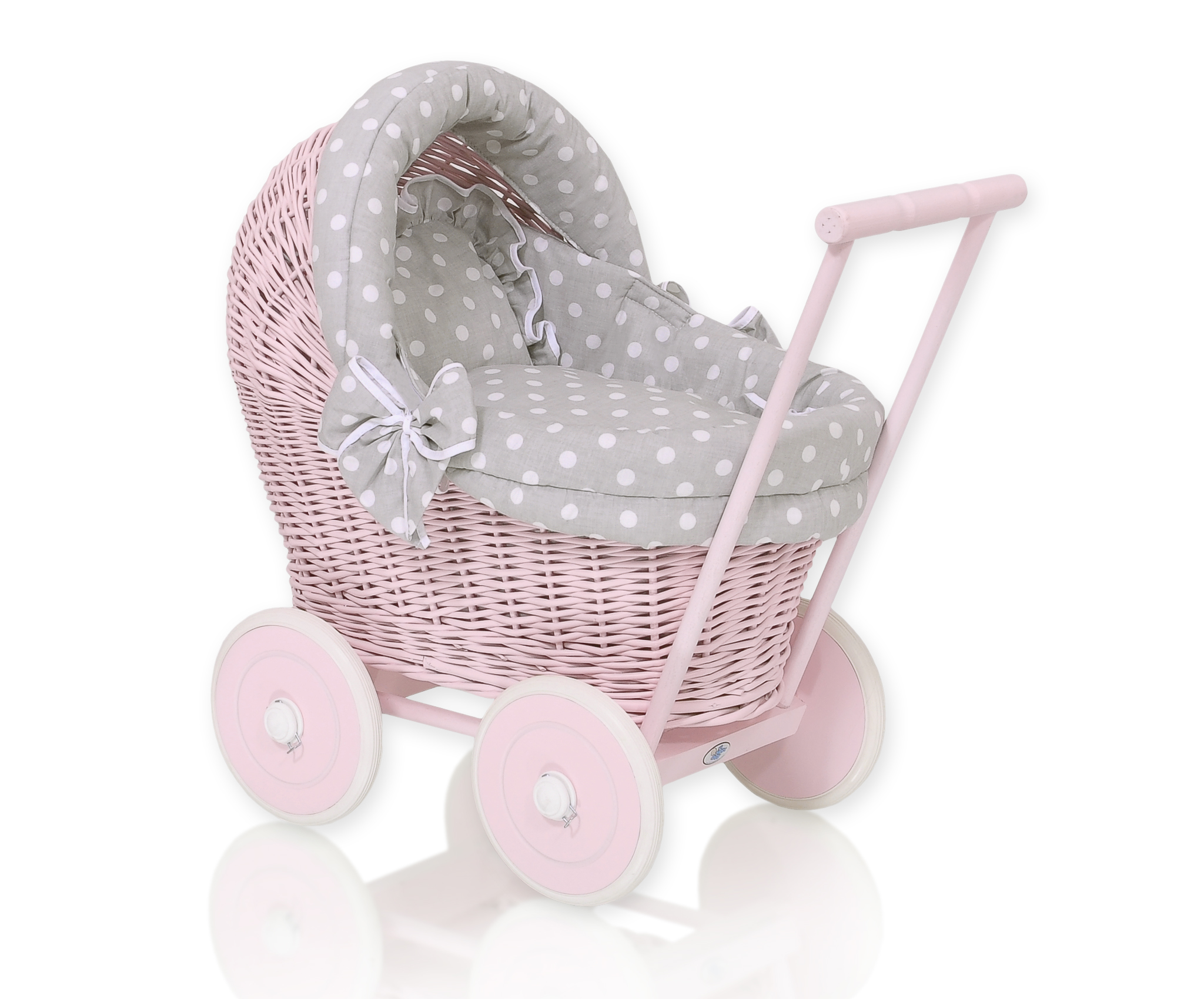 Rieten poppenwagen met stoffen kap Roze Wit Grijs PolkaprikkerRieten poppenwagen met stoffen kap Roze Wit Grijs PolkaprikkerRieten poppenwagen met stoffen kap Roze Wit Grijs PolkaprikkerRieten poppenwagen met stoffen kap Roze Wit Grijs Polkaprikker