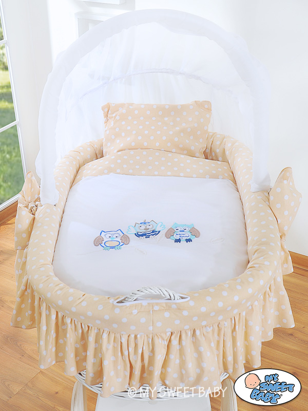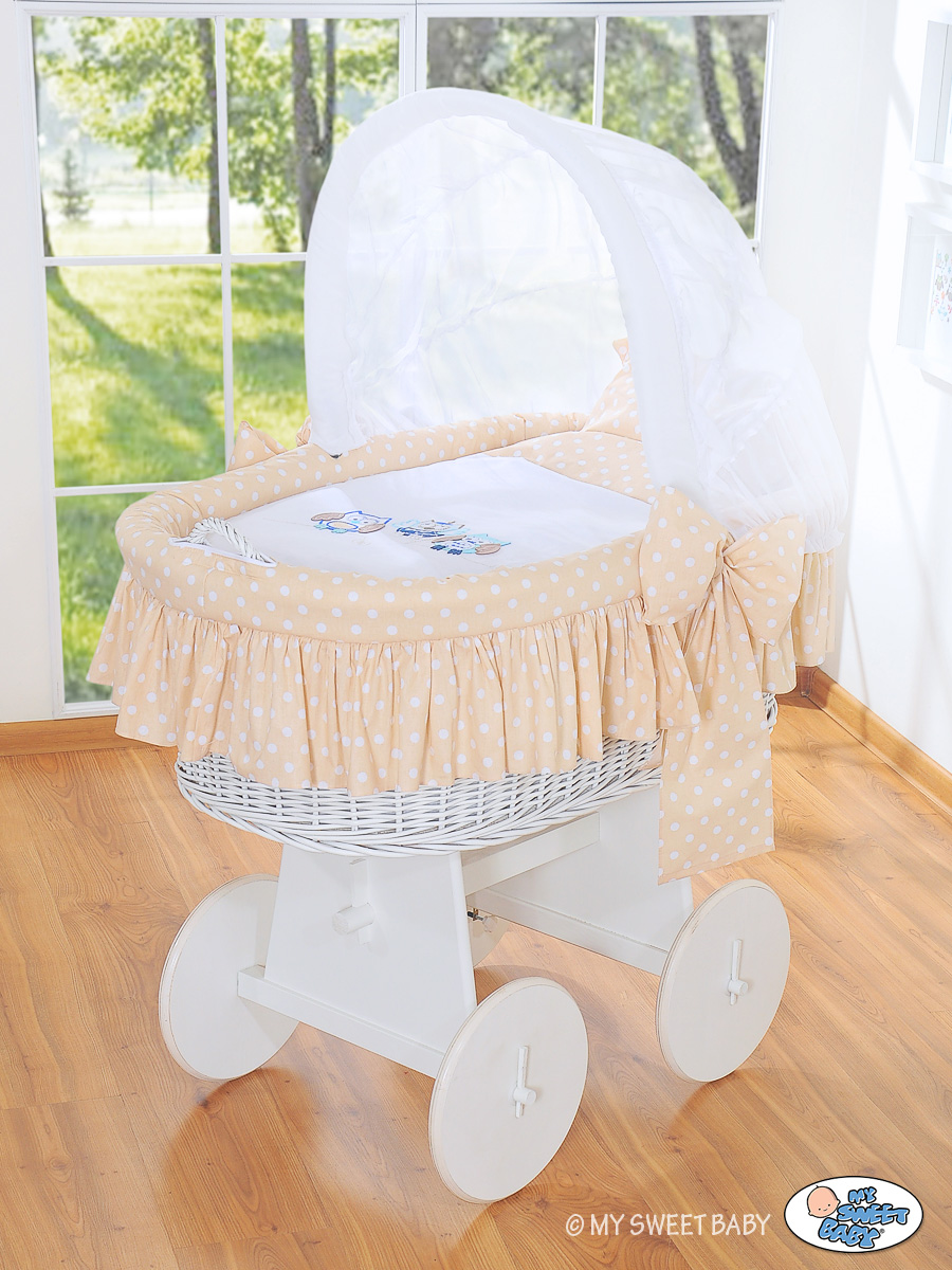 Rieten Wieg met Kap Beige Gelukkige Uilen