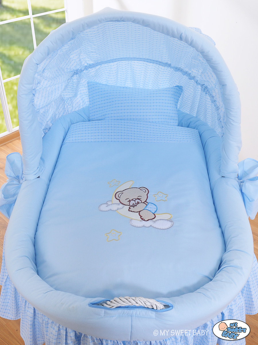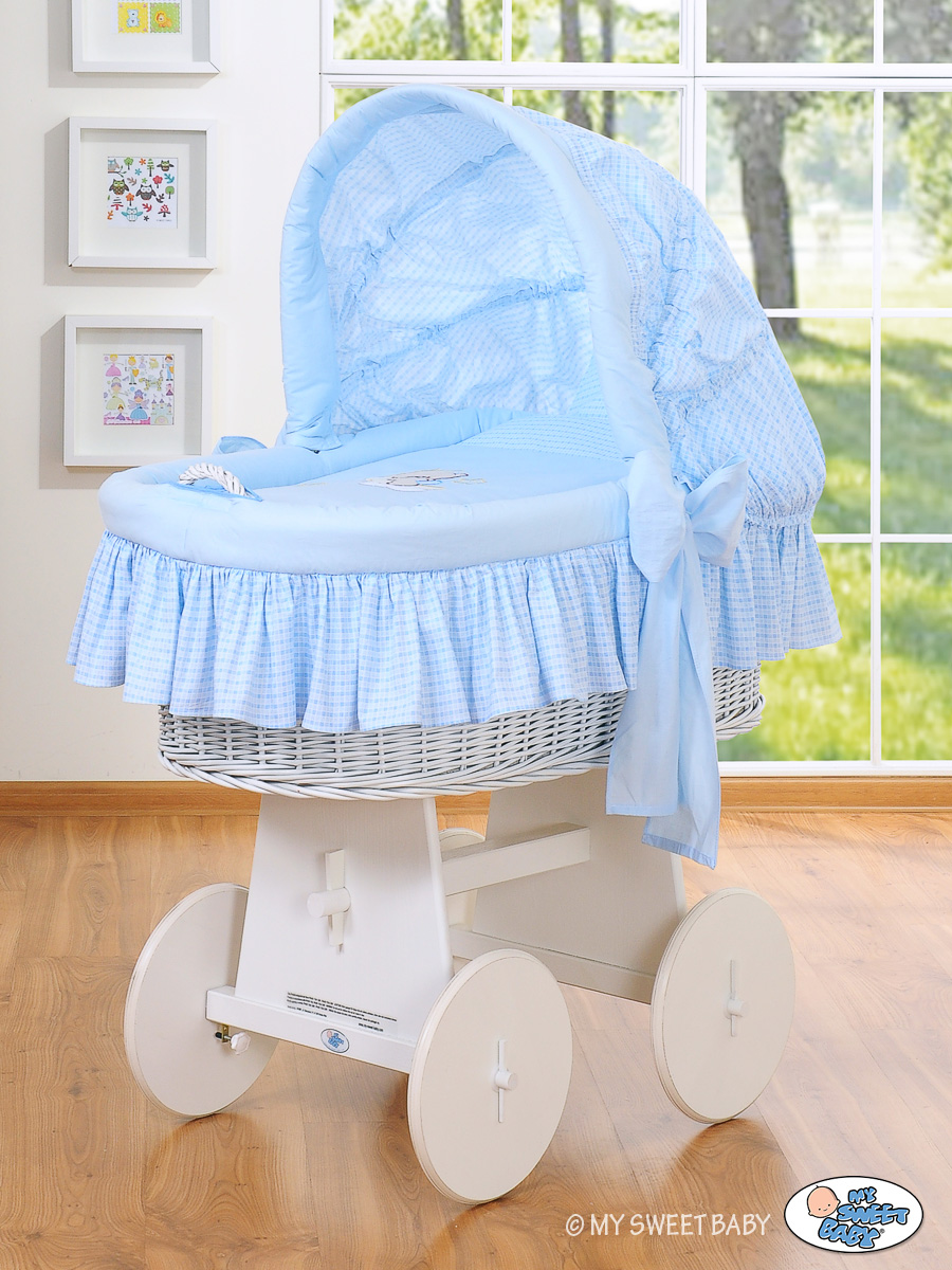 Kleinbaby.nl » Babywiege » Wiegje met kap » Wiegen met kap » Rieten Wieg met Kap Blauw Welterusten