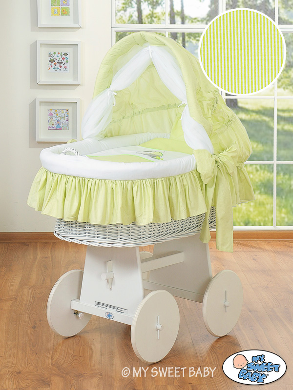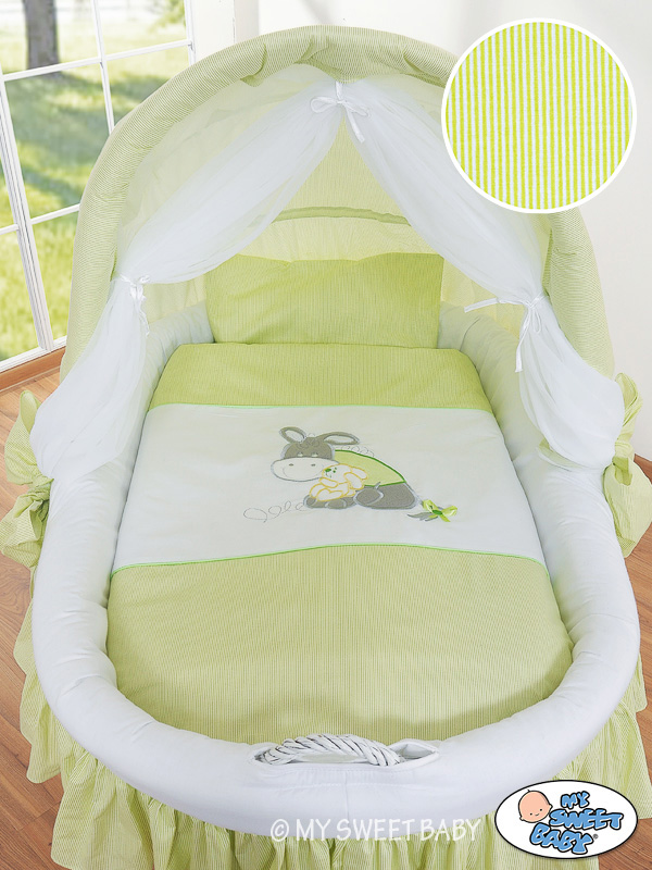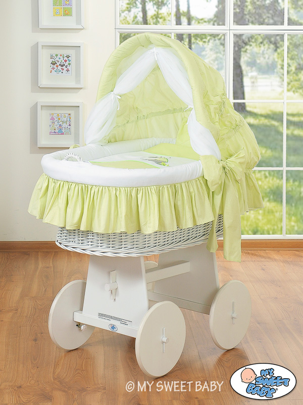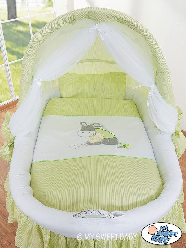 Kleinbaby.nl » Babywiege » Wiegje met kap » Wiegen met kap » Rieten Wieg met Kap Groen Ezel Luca