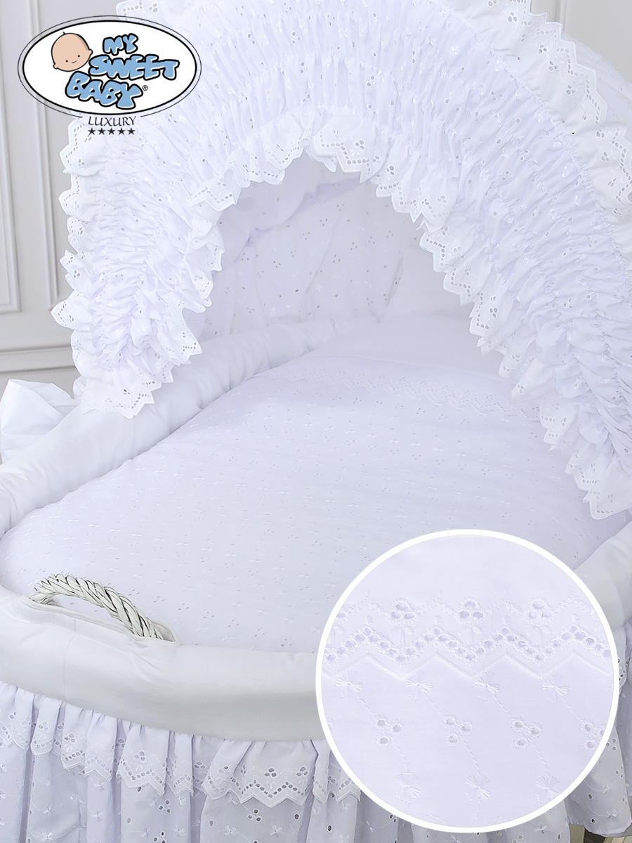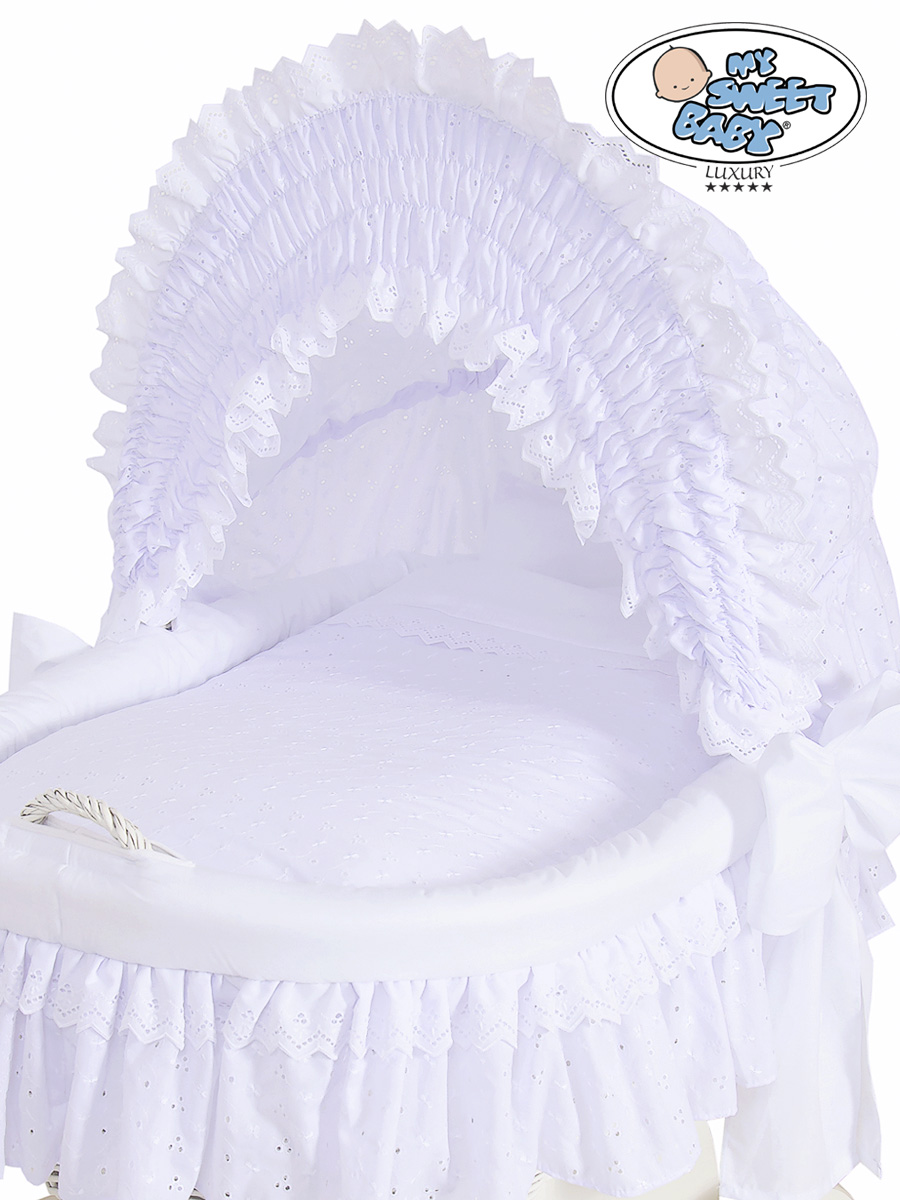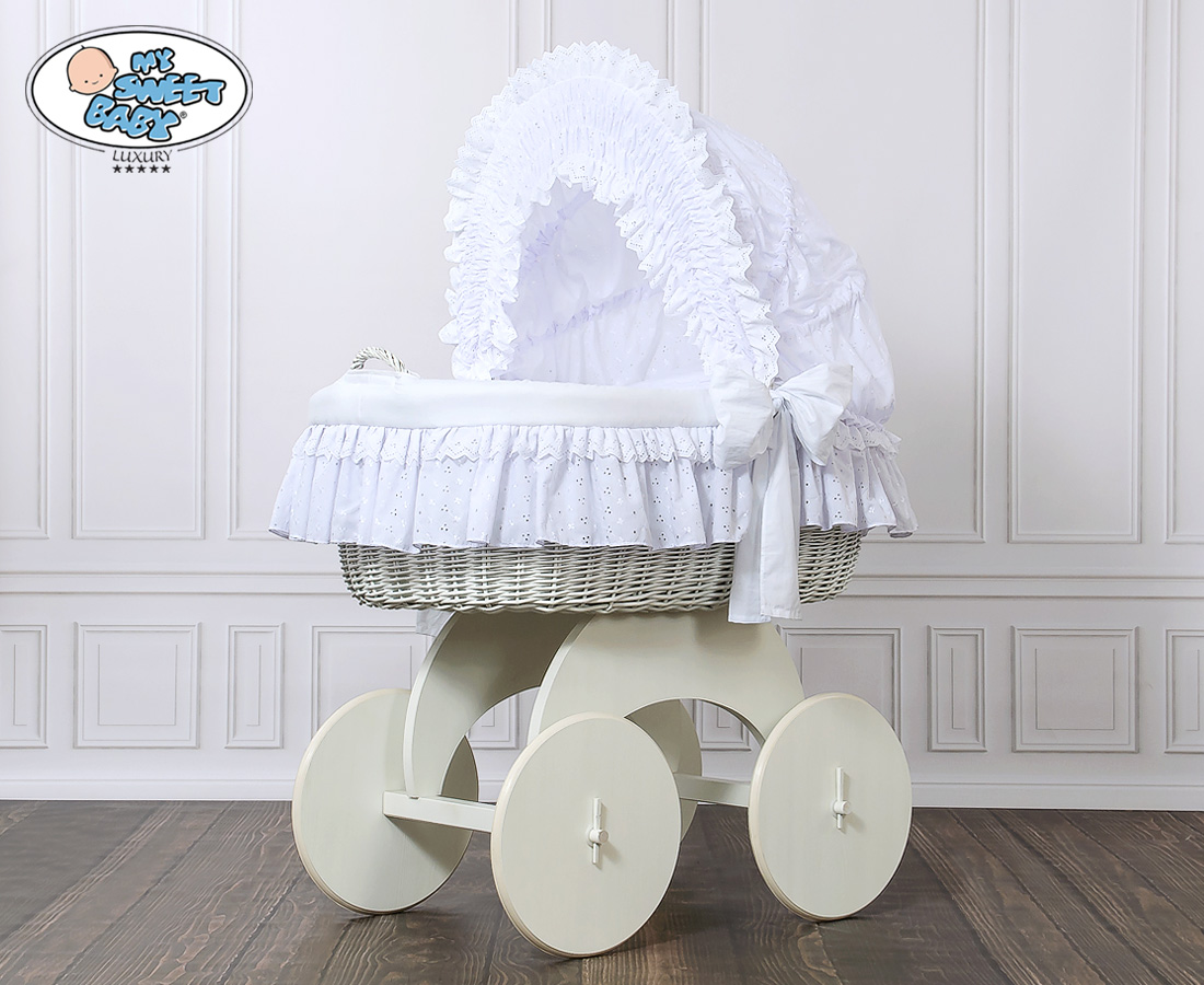 Kleinbaby.nl » Babywiege » Rieten Wieg My Sweet Baby Luxury » Rieten Wiegen met Kap » Rieten Wiegen met Kap » Rieten Wieg met Kap met Beddengoedset voor Baby Charlotte