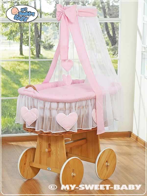 Een prachtige mand en tevens de grootste wieg op de markt, met natuurlijke kleuren van riet en hout.