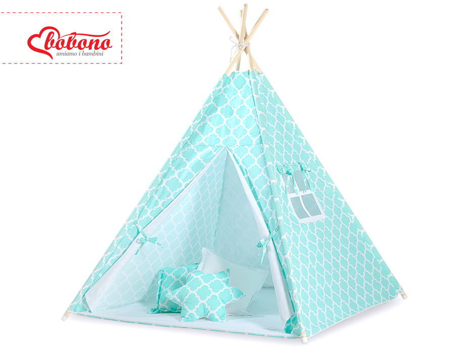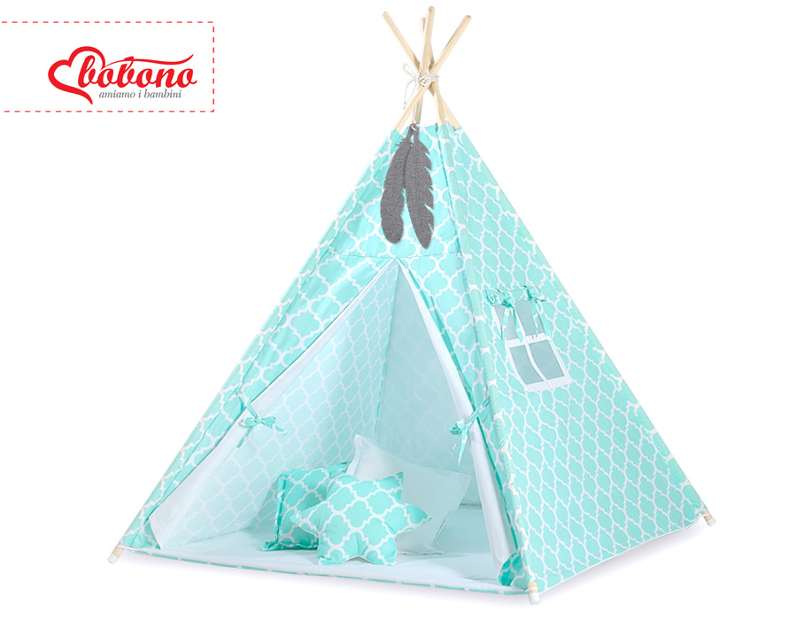 Set: Tipi-tent Speelkleed GRATIS decoratieve veren Mint Marokko