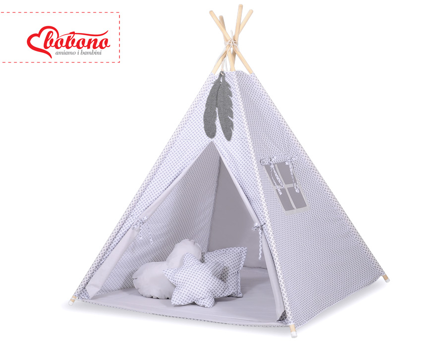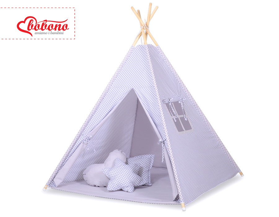 Kleinbaby.nl » Speelgoed Knuffels » Tipi-tenten » Set Tipi-tent met Speelmat » Set: Tipi-tent Speelkleed Grijs
