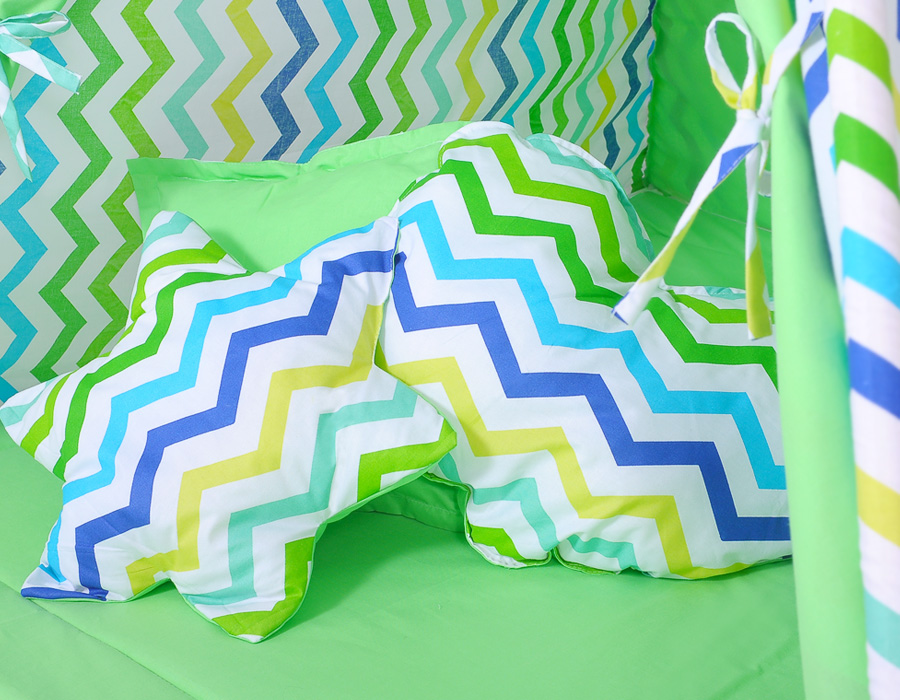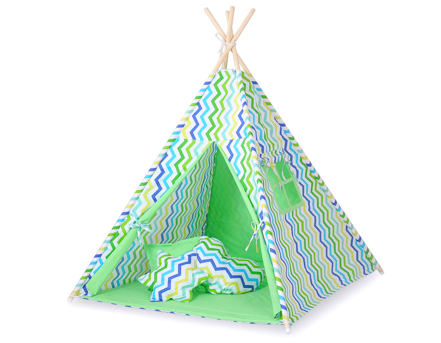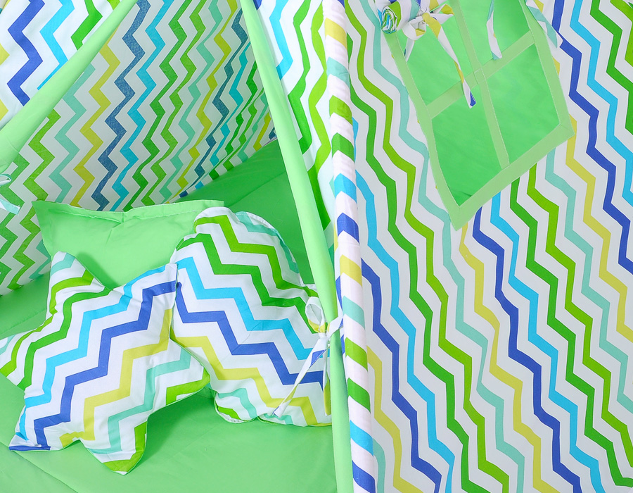 Set: Tipi-tent Speelkleed Kussens Groen Blauw Zigzag