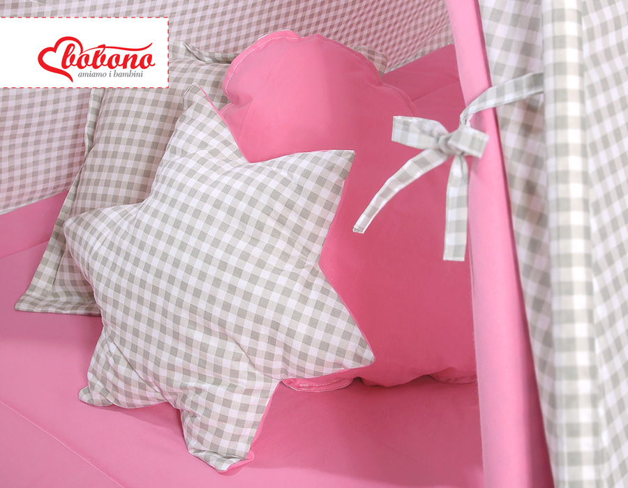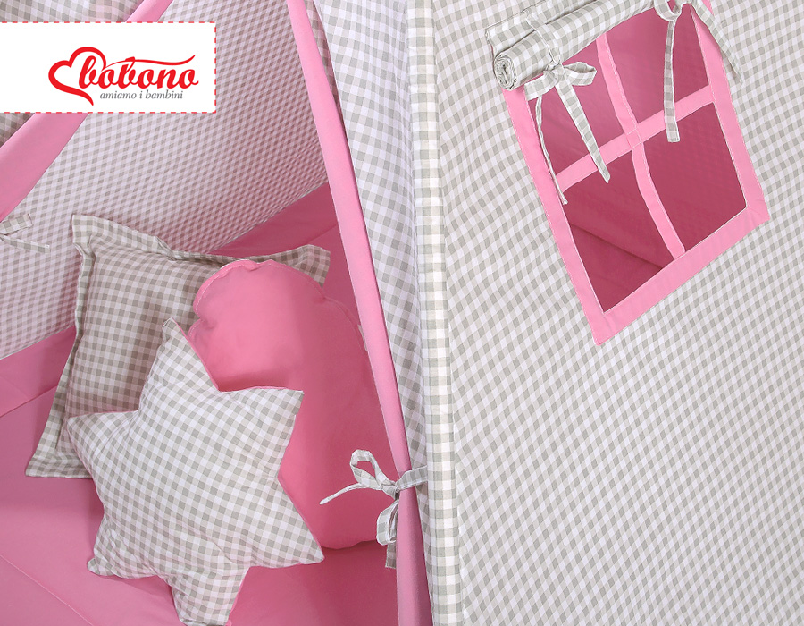 Set: Tipi-tent Speelkleed Kussens Roze Grijs Geruit