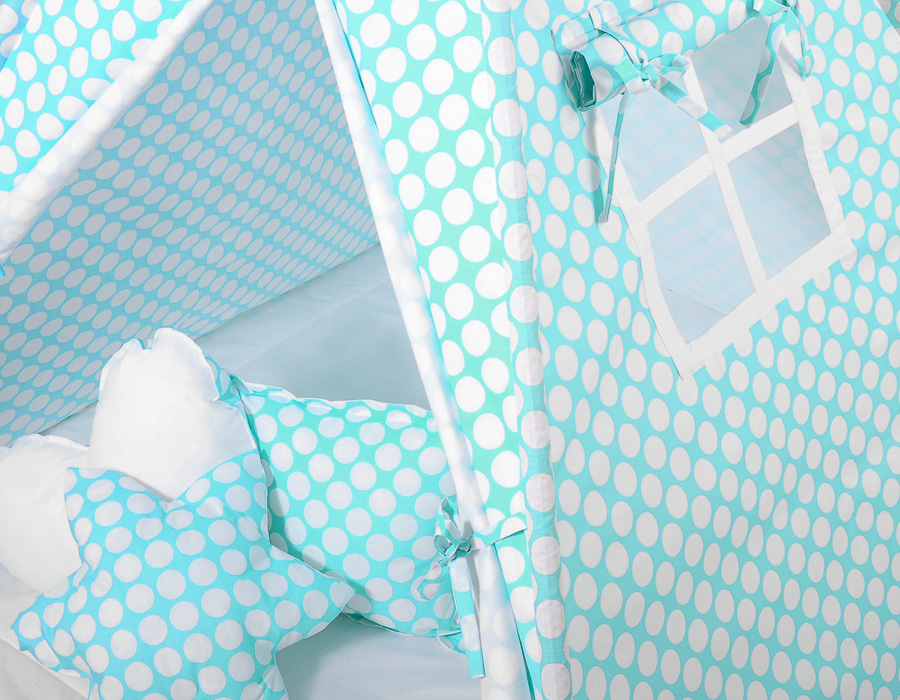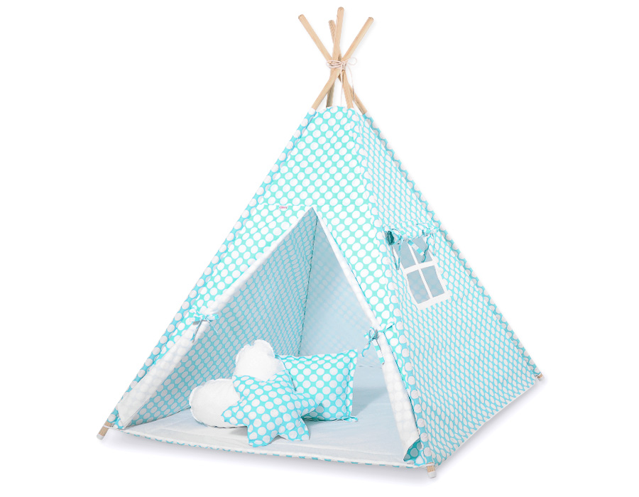 Kleinbaby.nl » Speelgoed Knuffels » Tipi-tenten » Mega Set: Tipi-tent + speelmat + kussens » Set: Tipi-tent Speelkleed Kussens Turkoois
