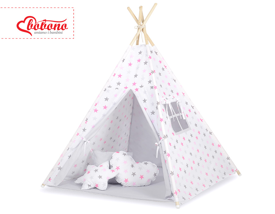 Set: Tipi-tent Speelmat Roze Grijs Sterren