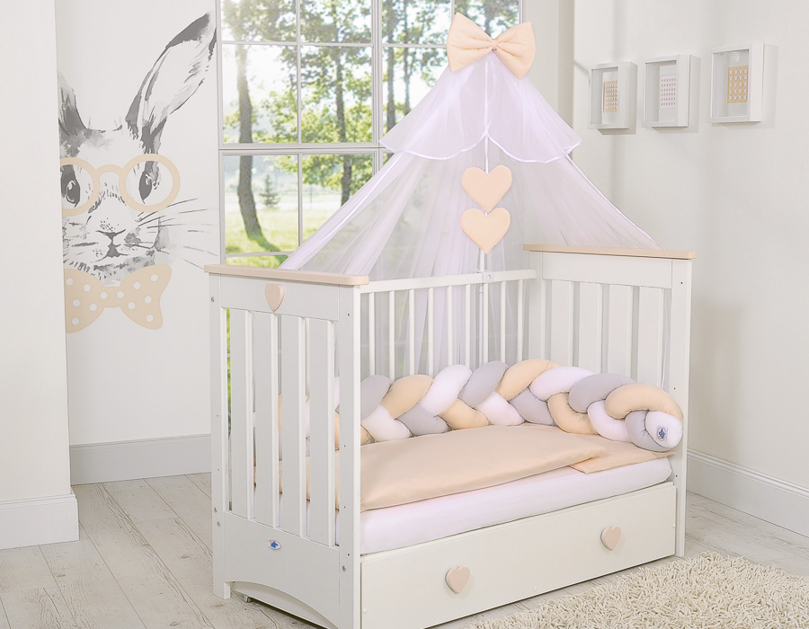 Universele klamboe sluier geschikt voor ledikanten van 140x70 cm en 120x60 cm. Geschikt voor alle ledikanten en is tevens zeer decoratief.