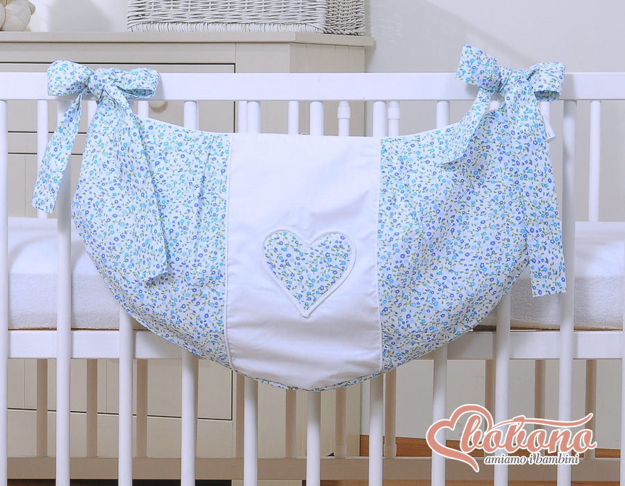 Kleinbaby.nl » Beddengoed voor Ledikant » Beddengoed Set Collectie Harten » Speelgoedtas Harten » Speelgoedtas voor Kinderbed - Harten Blauw Bloemenweide Bloemen