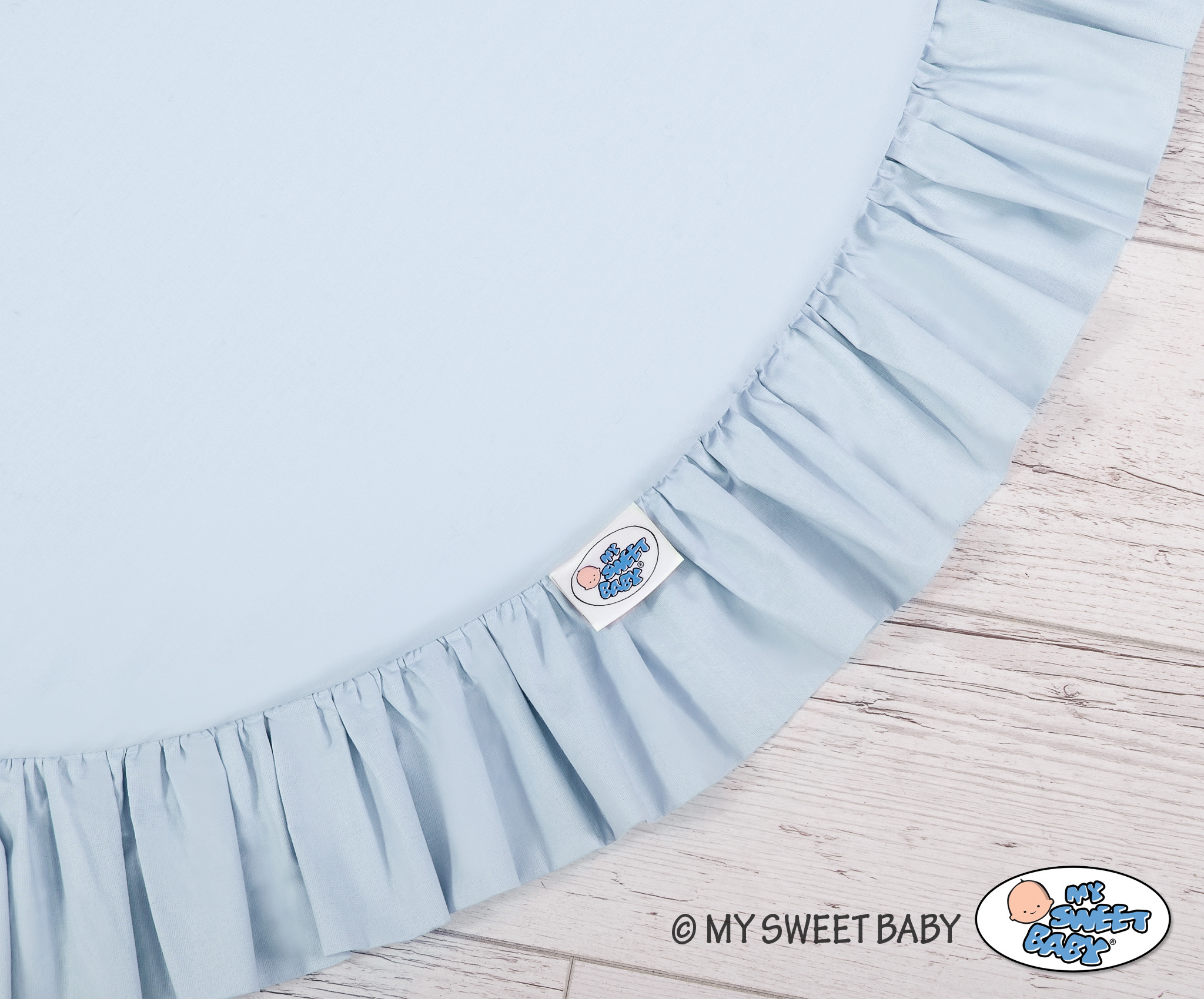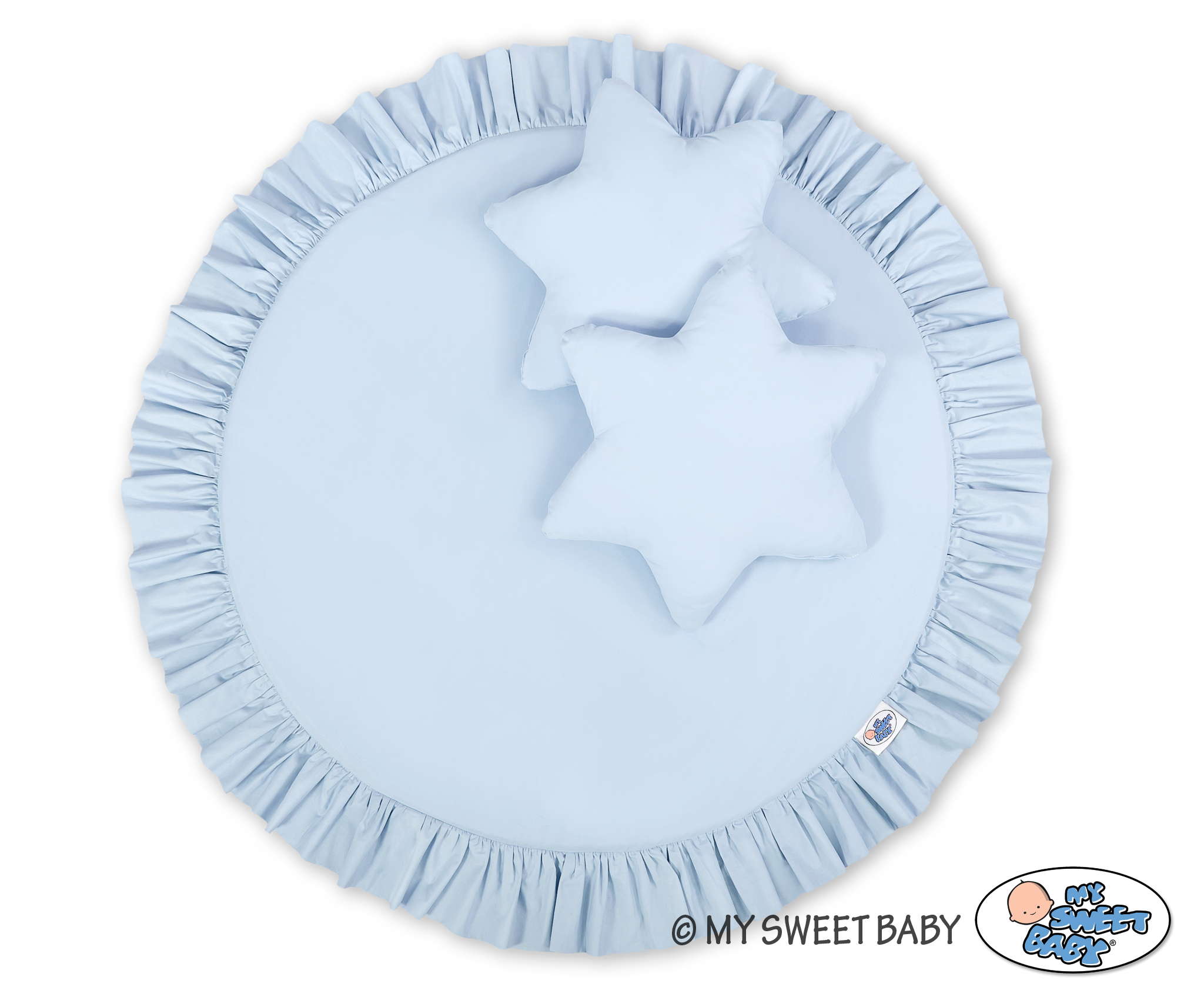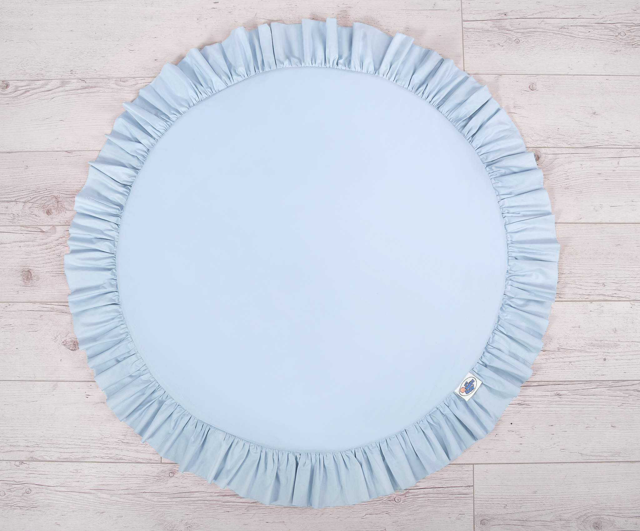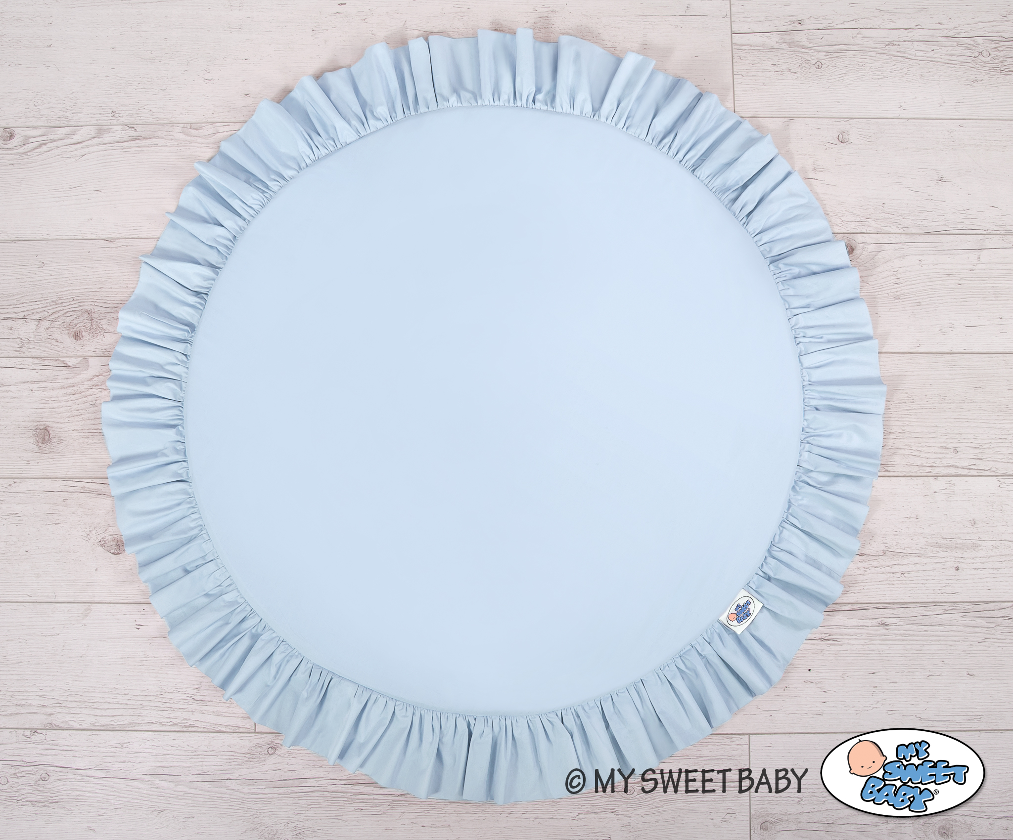 Een speelmat met ruche. Deze kan worden gebruikt als tapijt, speelmat of als vloermat voor de katoenen luifel. Deze speelmat kan vanaf de geboorte worden gebruikt als een plaats om te rusten of om op de buik te spelen. Het heeft een zachte vulling die de baby perfect isoleert van de harde en koude vloer. De hoes is gemaakt van Oekotex-gecertificeerd 100% katoen. De bodem van de speelmat is gemaakt van een modern, anti-allergie en gecertificeerd materiaal. De bodem kan afgenomen en gewassen worden.