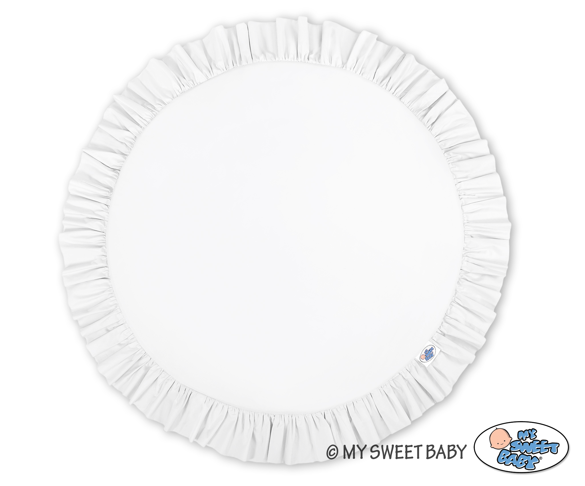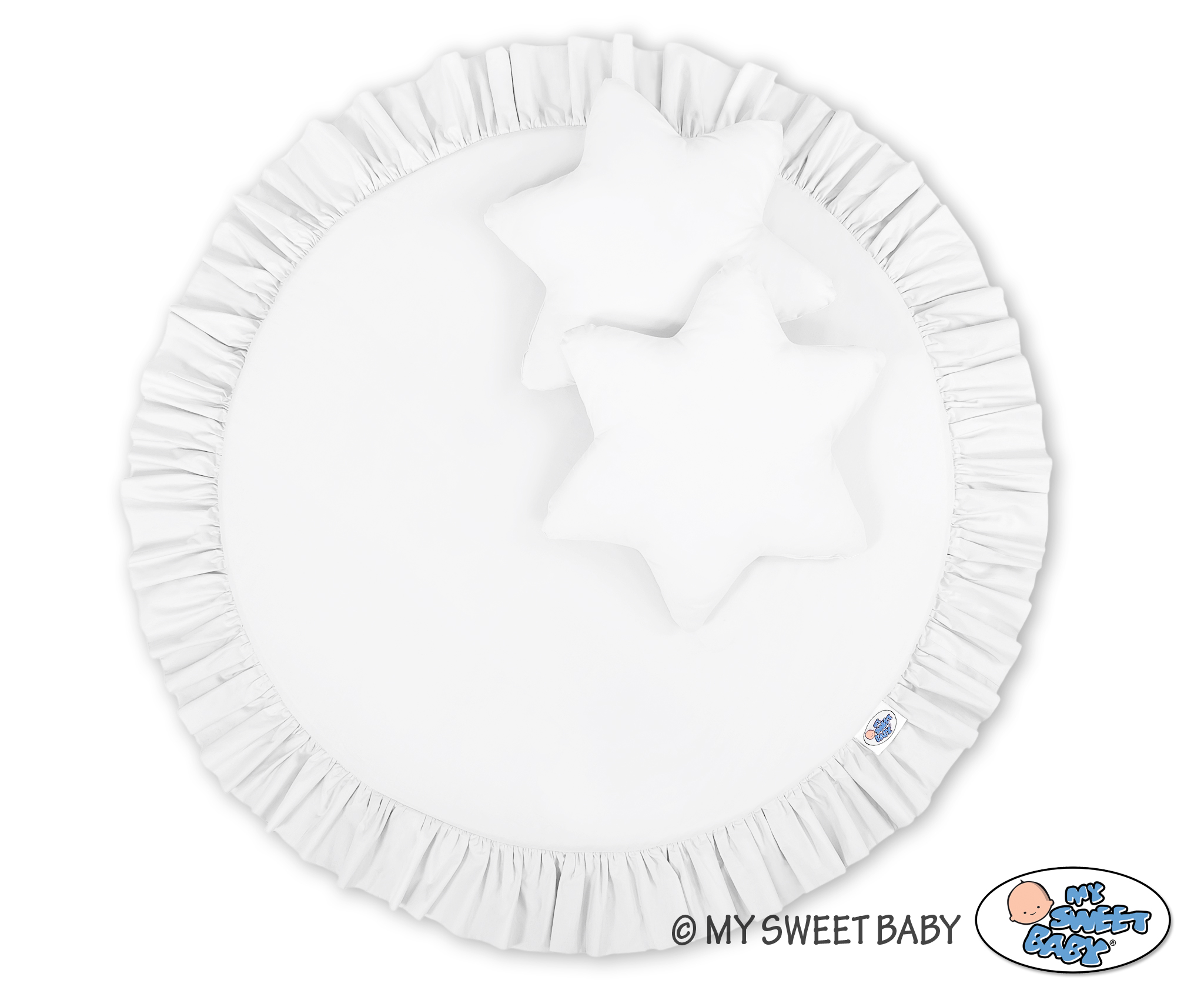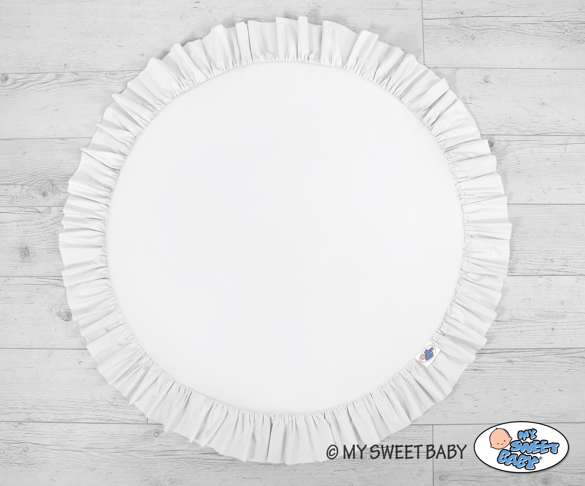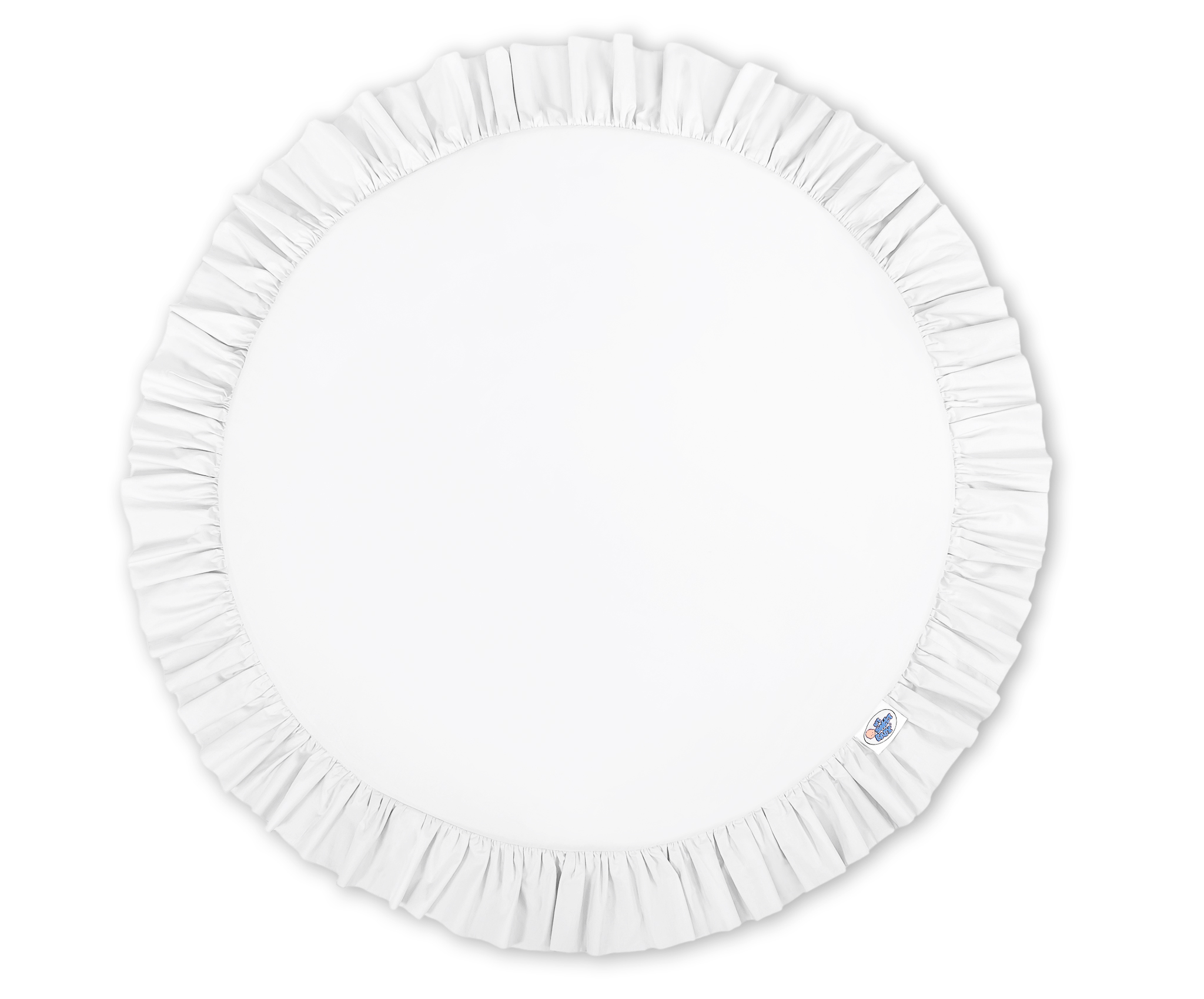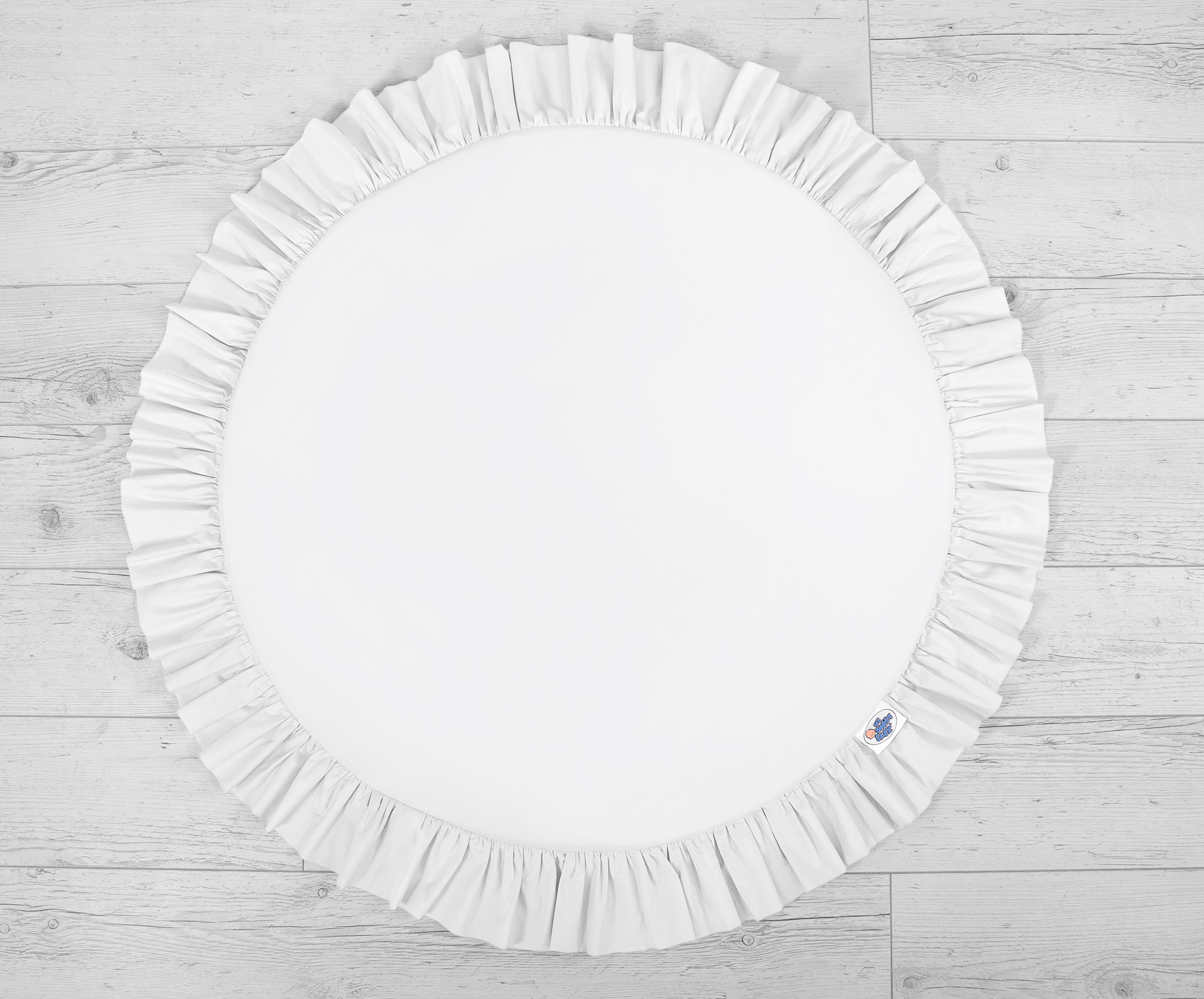 Een speelmat met ruche. Deze kan worden gebruikt als tapijt, speelmat of als vloermat voor de katoenen luifel. Deze speelmat kan vanaf de geboorte worden gebruikt als een plaats om te rusten of om op de buik te spelen. Het heeft een zachte vulling die de baby perfect isoleert van de harde en koude vloer. De hoes is gemaakt van Oekotex-gecertificeerd 100% katoen. De bodem van de speelmat is gemaakt van een modern, anti-allergie en gecertificeerd materiaal. De bodem kan afgenomen en gewassen worden.