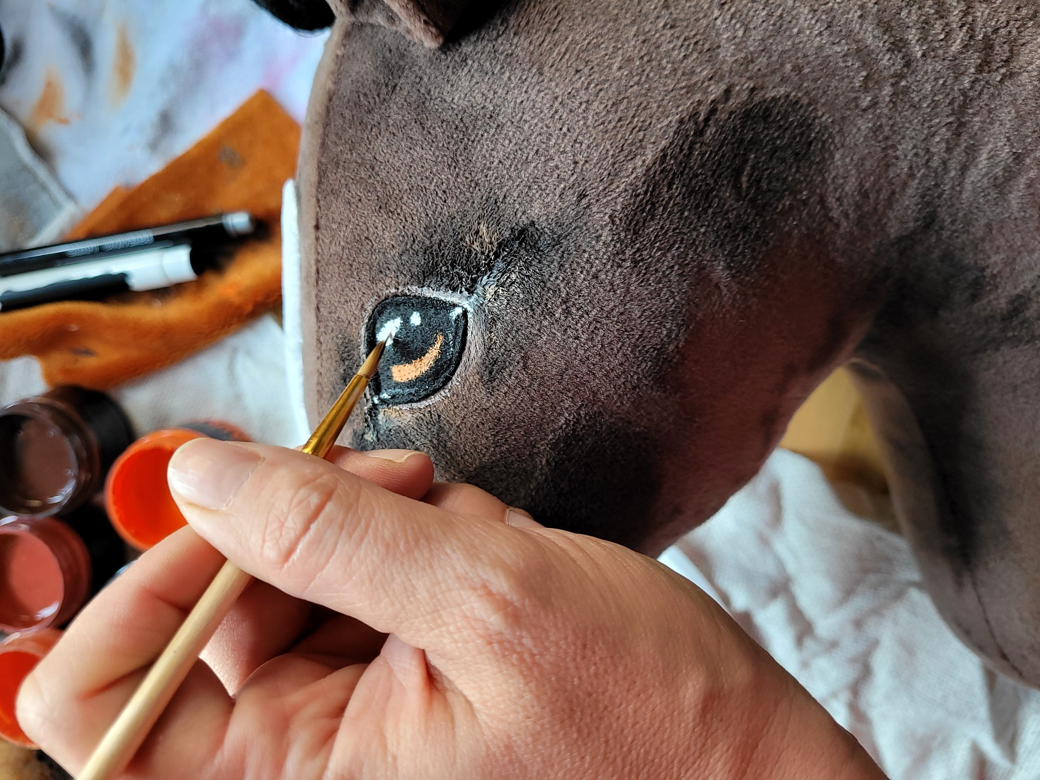De manen van het paard zijn dik, stevig genaaid en extra bevestigd. Gemaakt van de hoogste kwaliteit wol en acrylgaren. De oren van het paard zijn prachtig gevormd. Ogen en neusgaten gemaakt van zwart vilt, zorgvuldig genaaid. Met de hand geschilderd en geschaduwd.