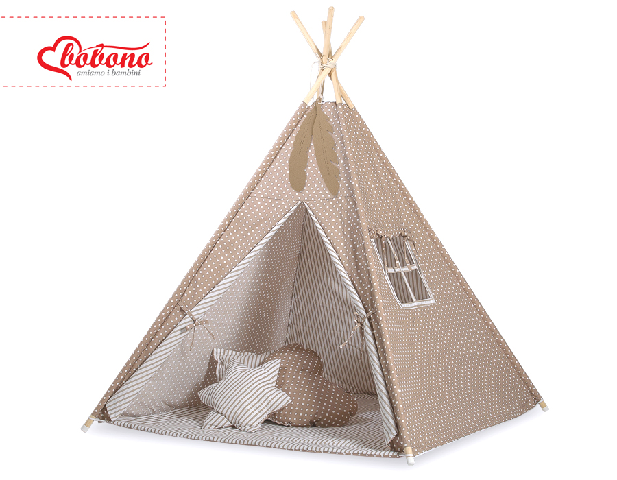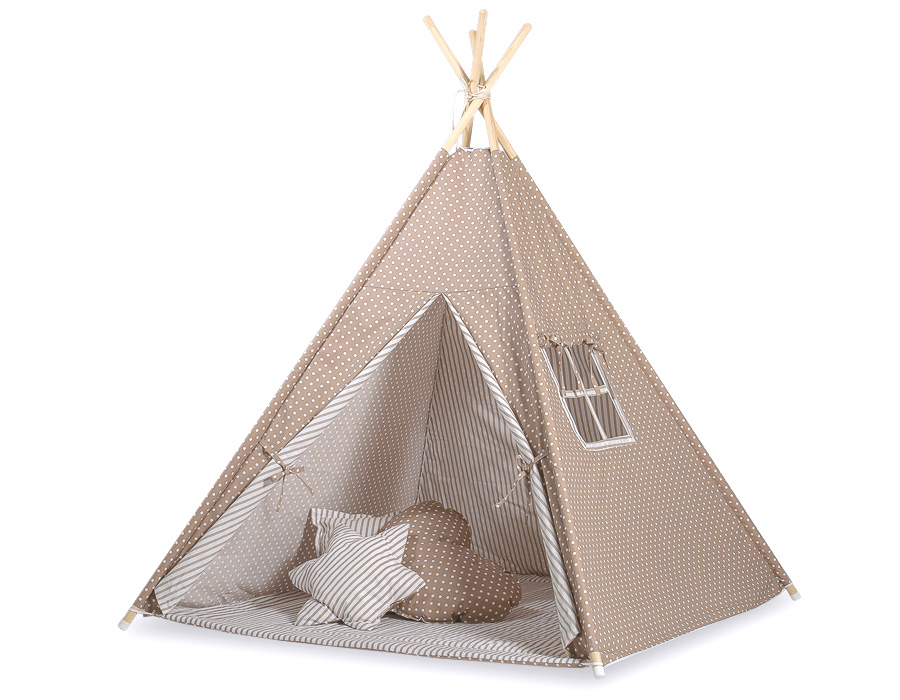 Kleinbaby.nl » Speelgoed Knuffels » Tipi-tenten » Tipi-tenten » Tipi-tent Indianen Tent Bruin Beige Polkaprikker Snijder