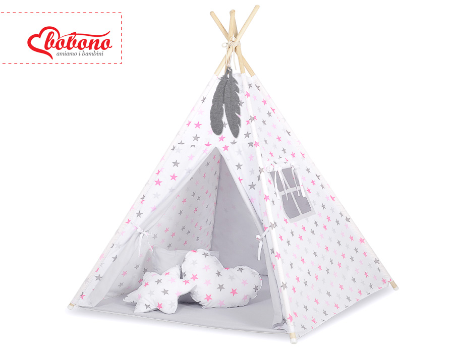 Kleinbaby.nl » Speelgoed Knuffels » Tipi-tenten » Tipi-tenten » Tipi-tent Indianen Tent Roze Grijs Sterren